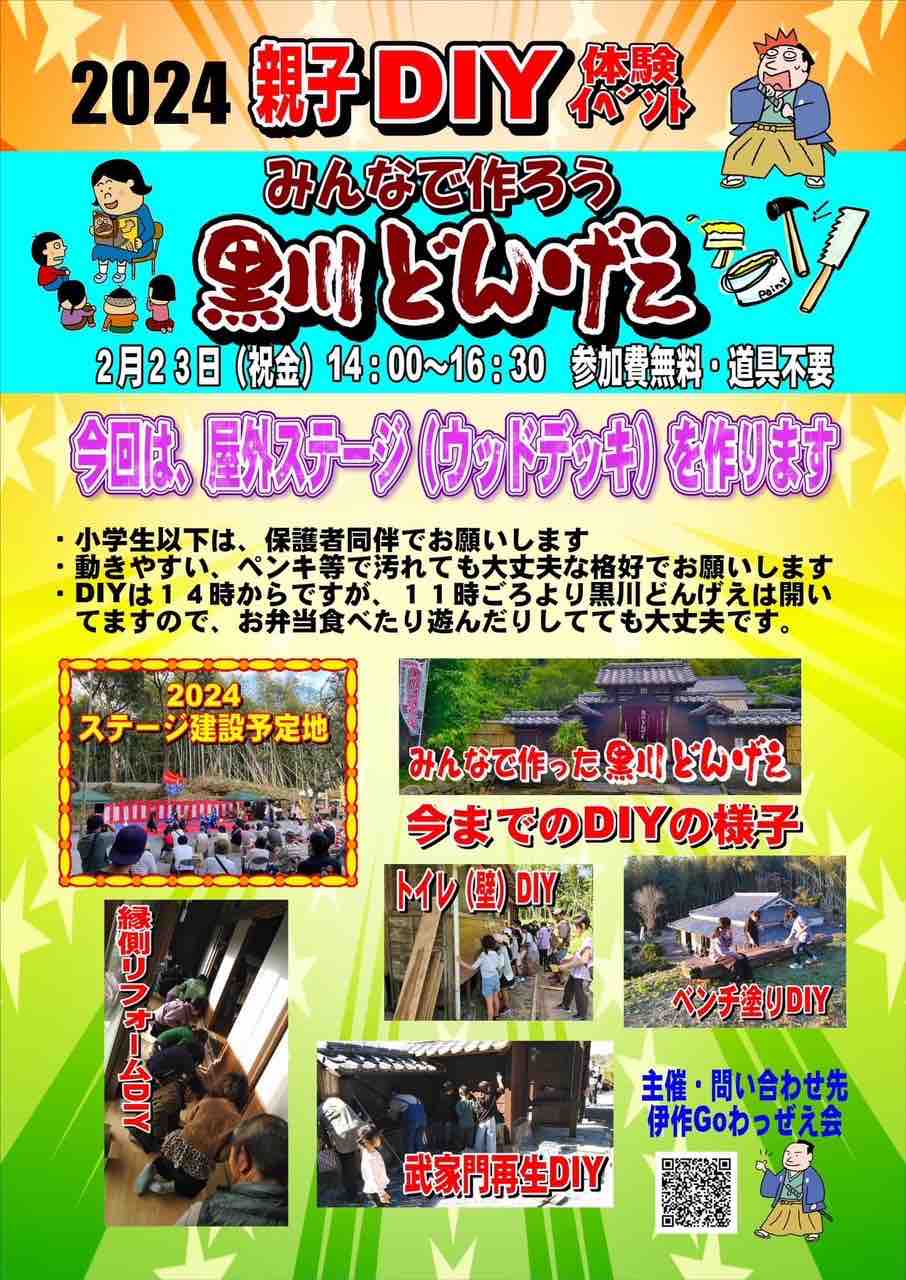 そして、今年度のDIYイベントのファイナルである今回、黒川どんげえの敷地にイベントステージを地域の方々と一緒に作ろうというイベントを企画!