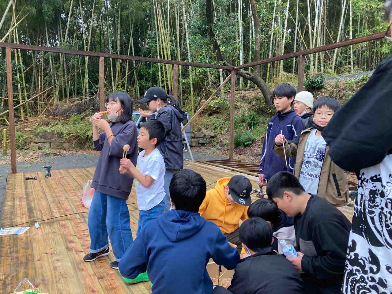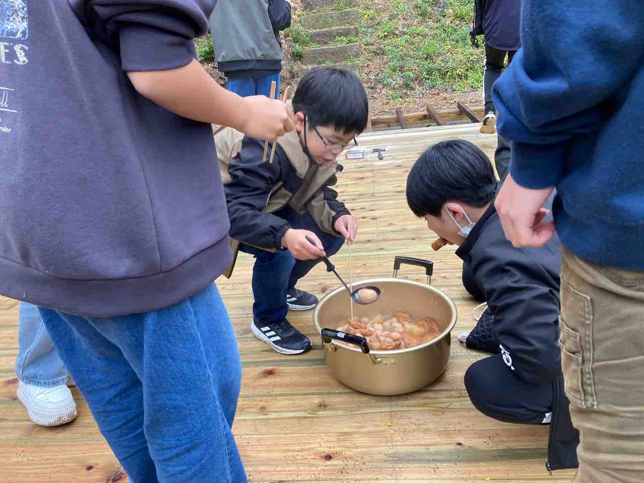 休憩タイム!なんとオヤツは大量のおでん!子どもたちは大喜びして食べております。