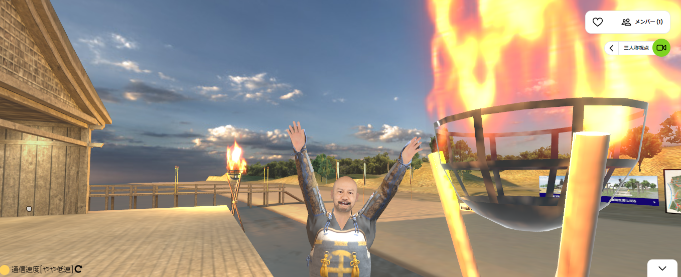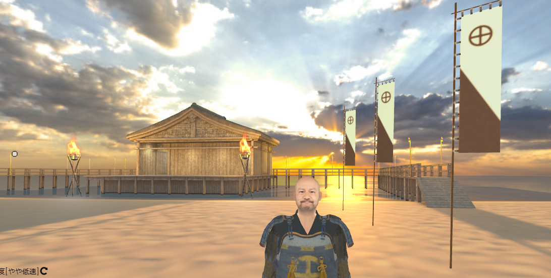 「このアバター、甲冑着てるし、島津家の家紋が入ってる」