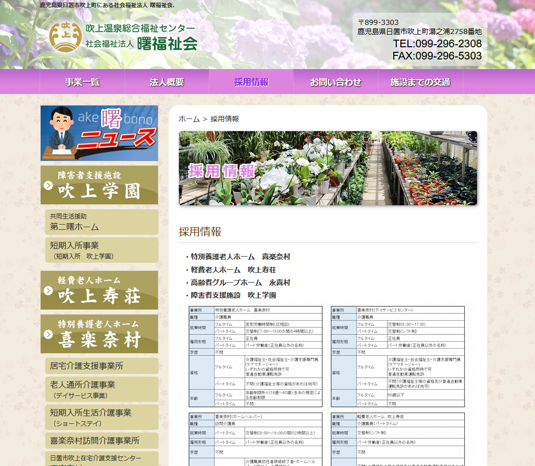 (曙福祉会ホームページ:採用情報)