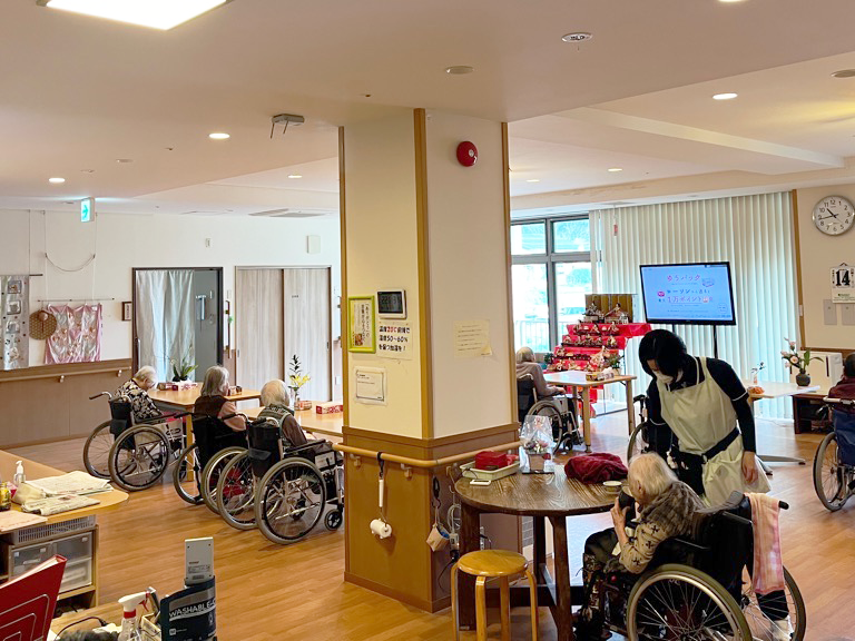 ▲取材日はお誕生日御膳が振舞われる日で、利用者さん方も待ち遠しそうでした。