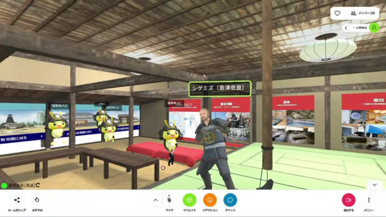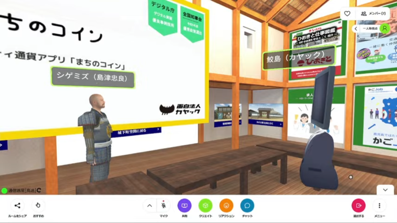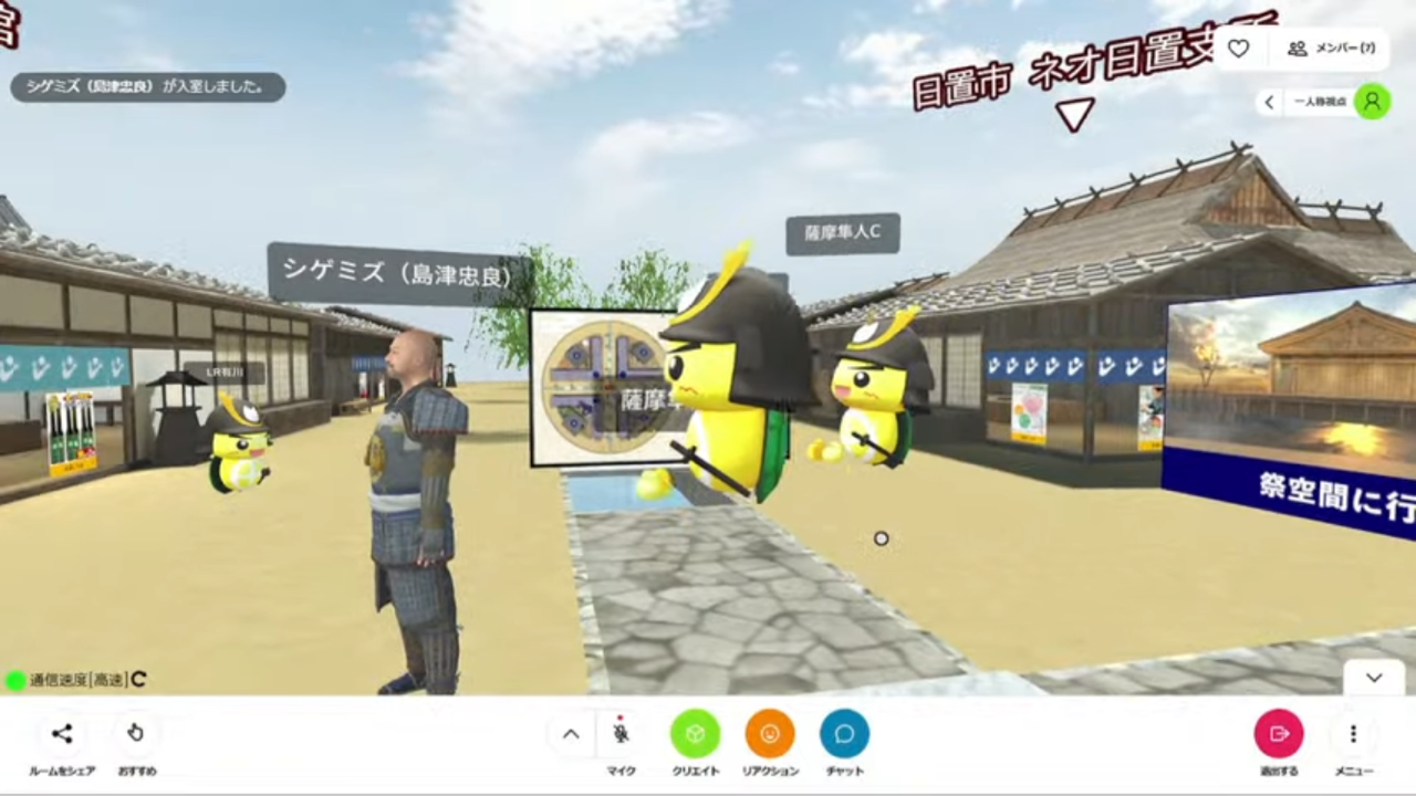 はい。Meta Quest 3で没入した先は、ネオ日置の城下町。私もマイアバターで入室。、