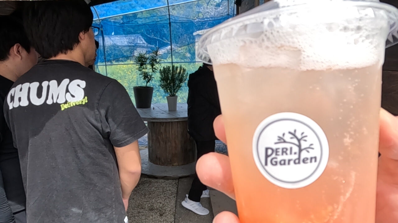 屋外のミニSHOPでグレープフルーツソーダ(果肉入り)を頂いた。パンも売ってる。