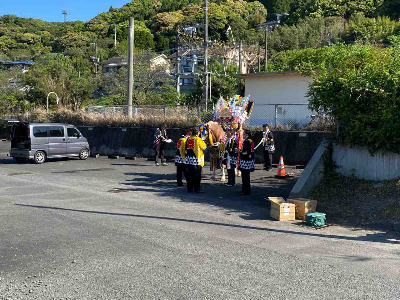 シャンシャン馬も湯之元駅付近で待機中