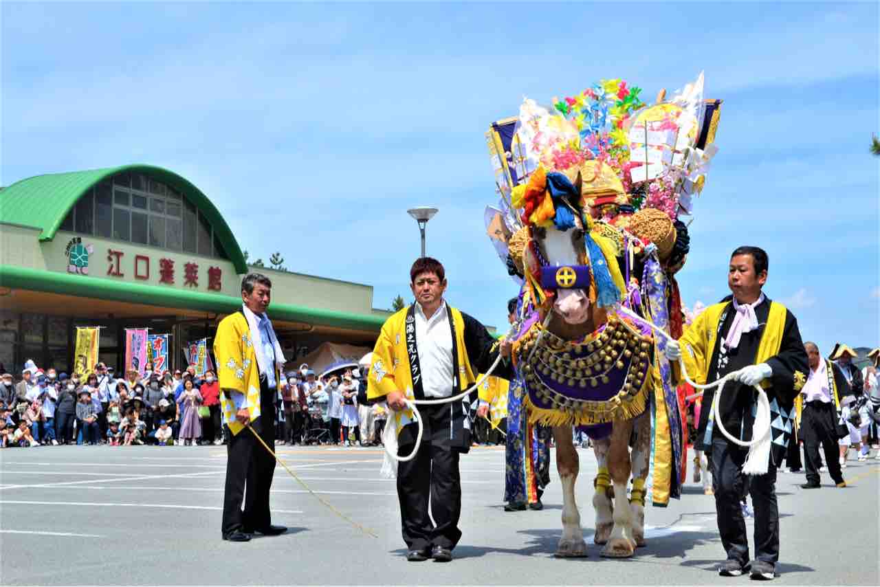 湯之元クラブのみなさんがいると馬も安心して歩きます