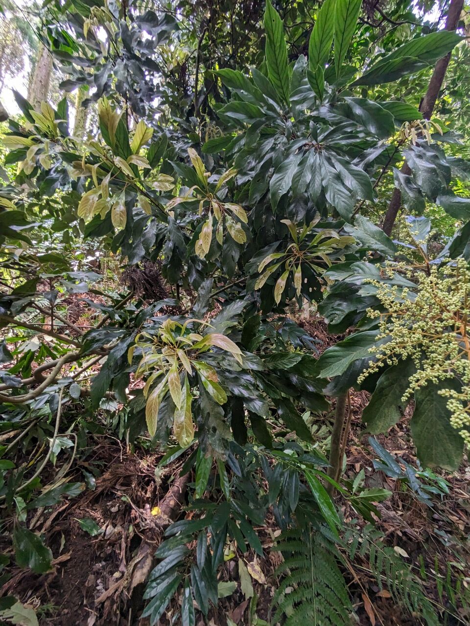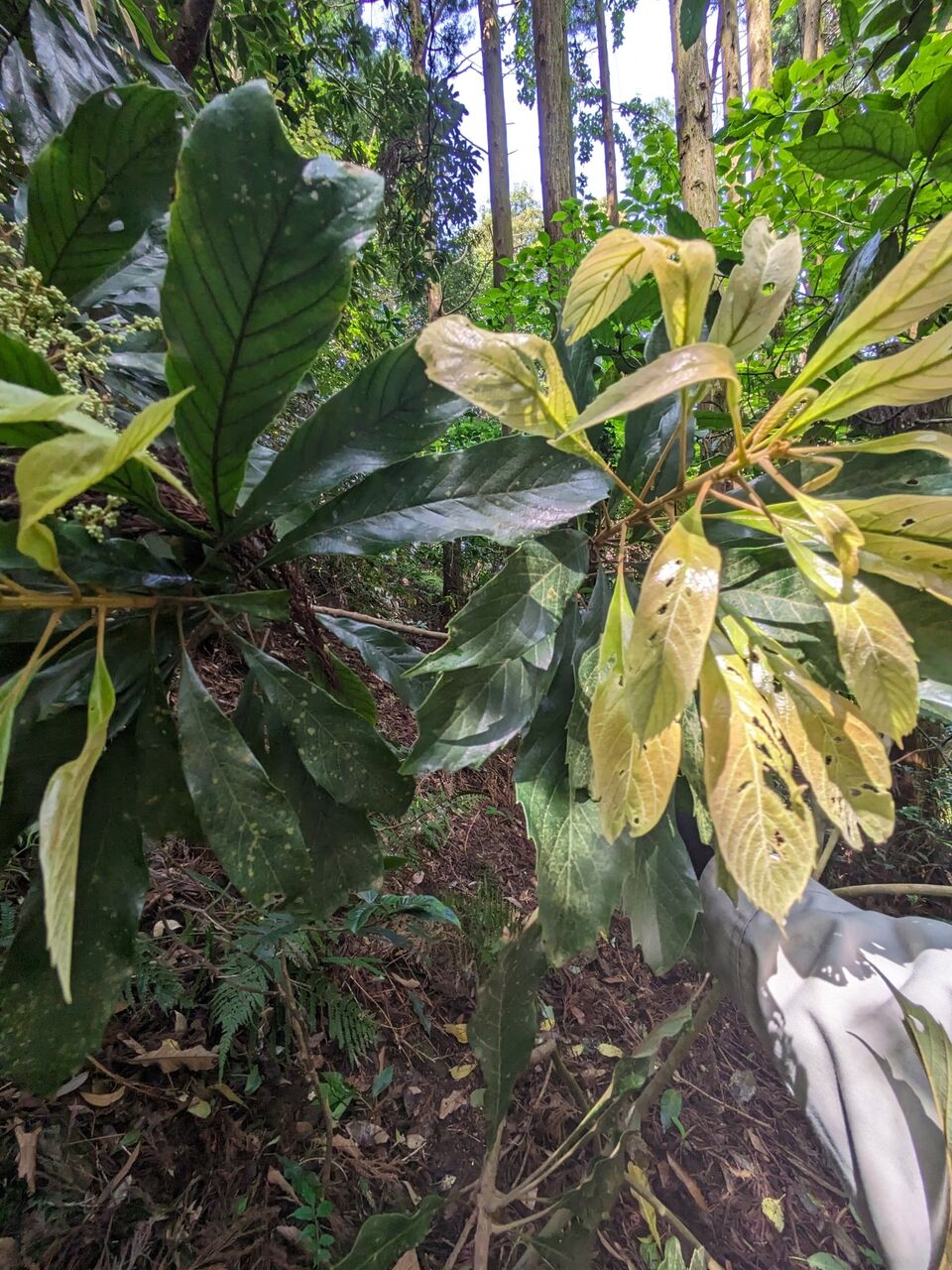 踊り子の親達、10人位で、ヤマビワ探しです。