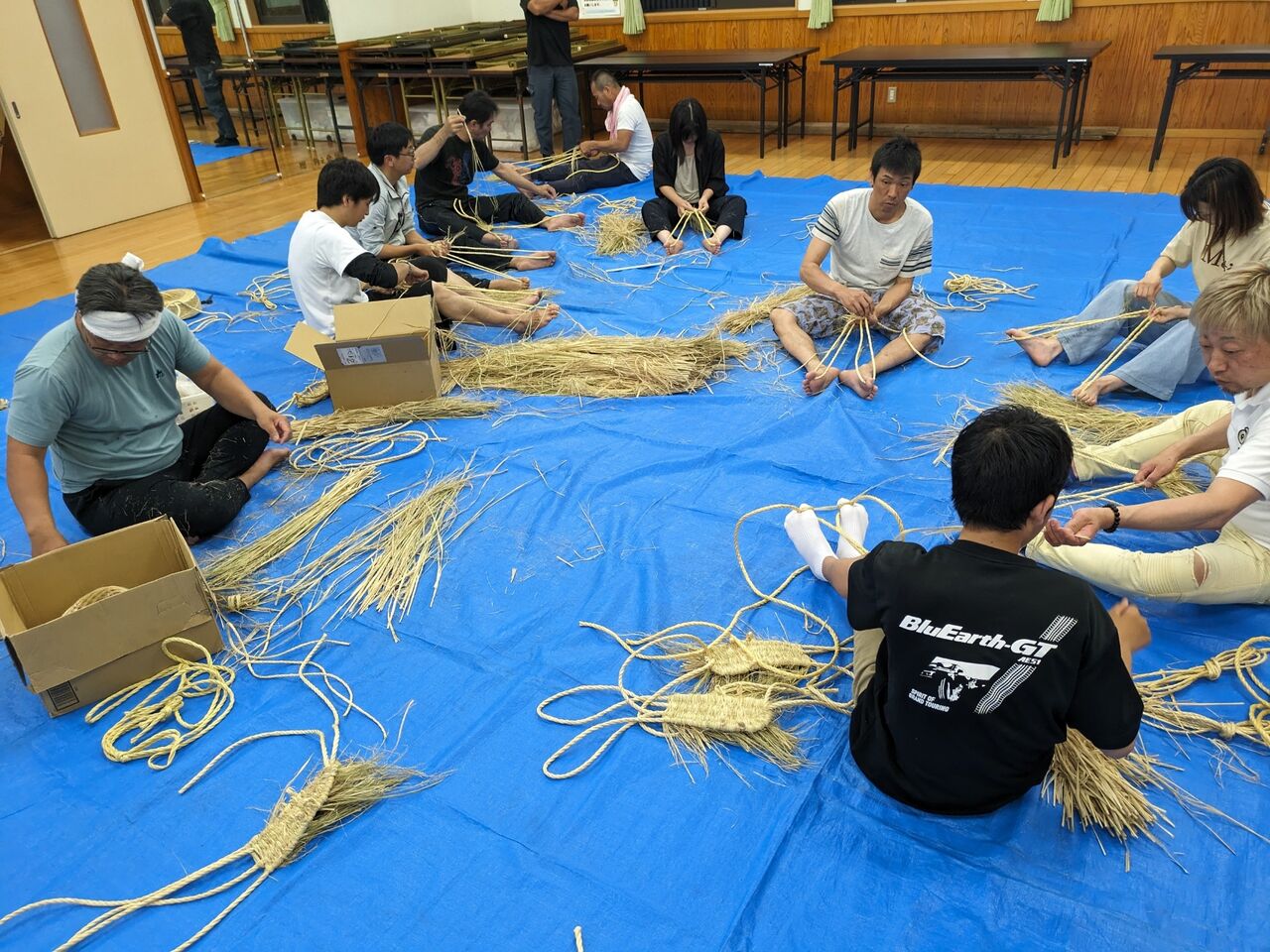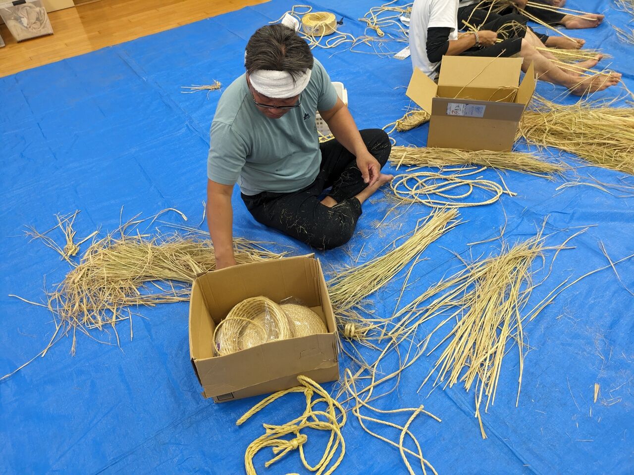 鎌踊りをする、子ども達のわらじを編みましょうかね。