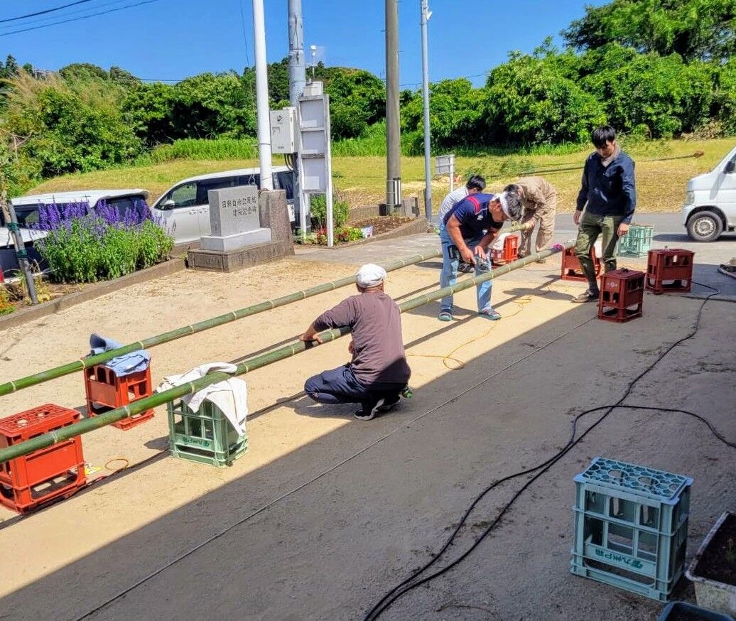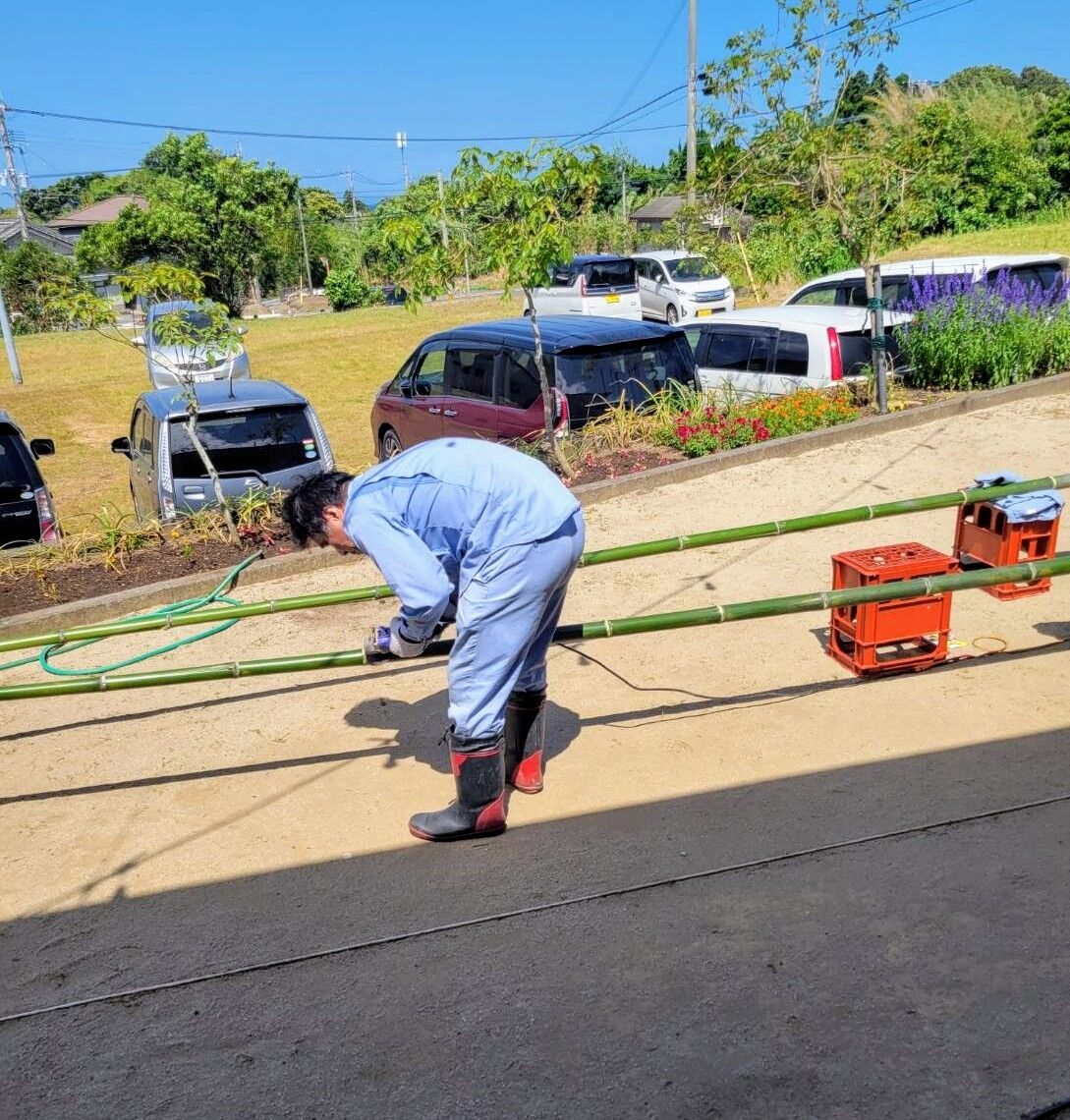 看板とシベ用の竹を切ります。