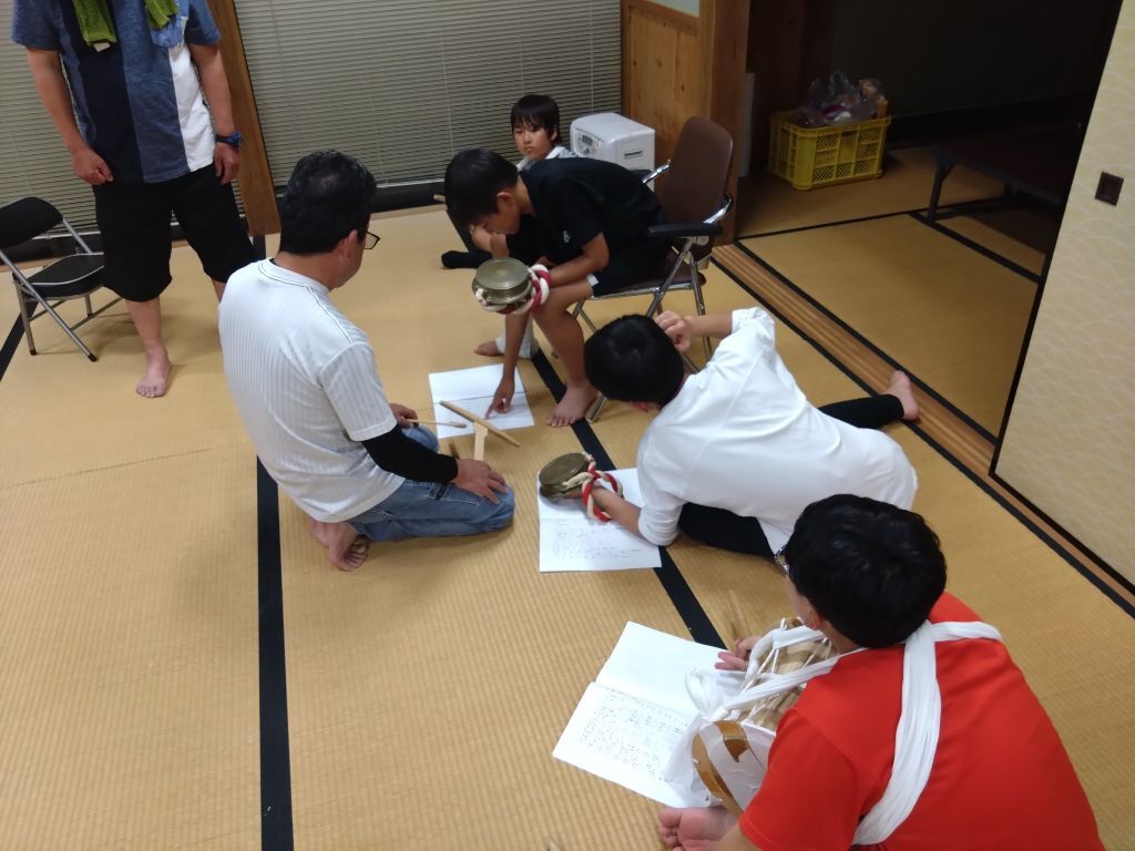 かねや小太鼓のリズムを大人から教わって練習していました。