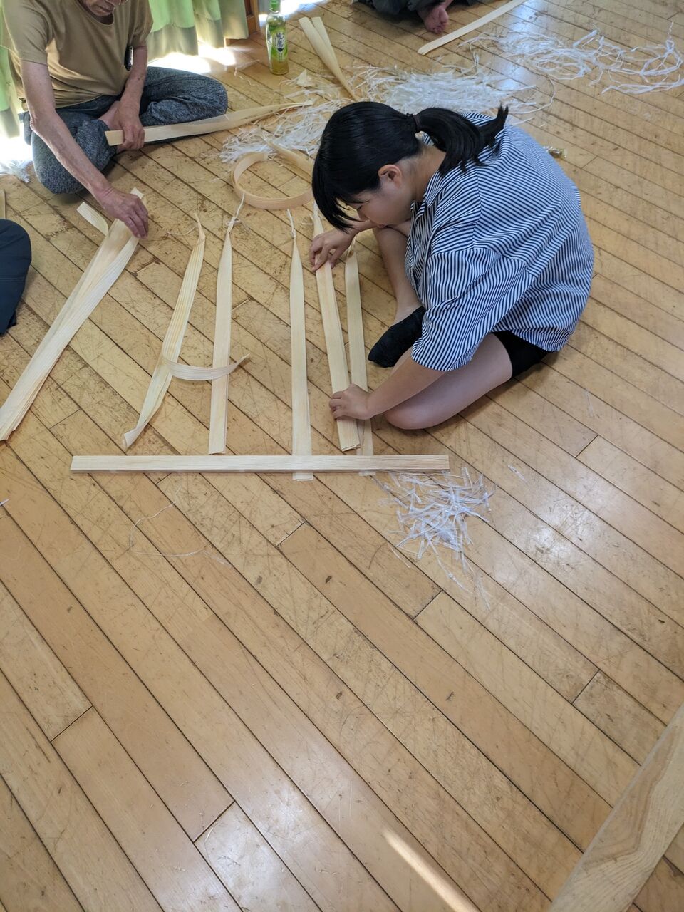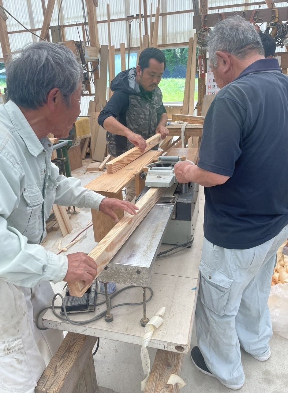 赤松をカンナで薄く削って、その削ったものを伸ばしていきます。 それがシベの素。