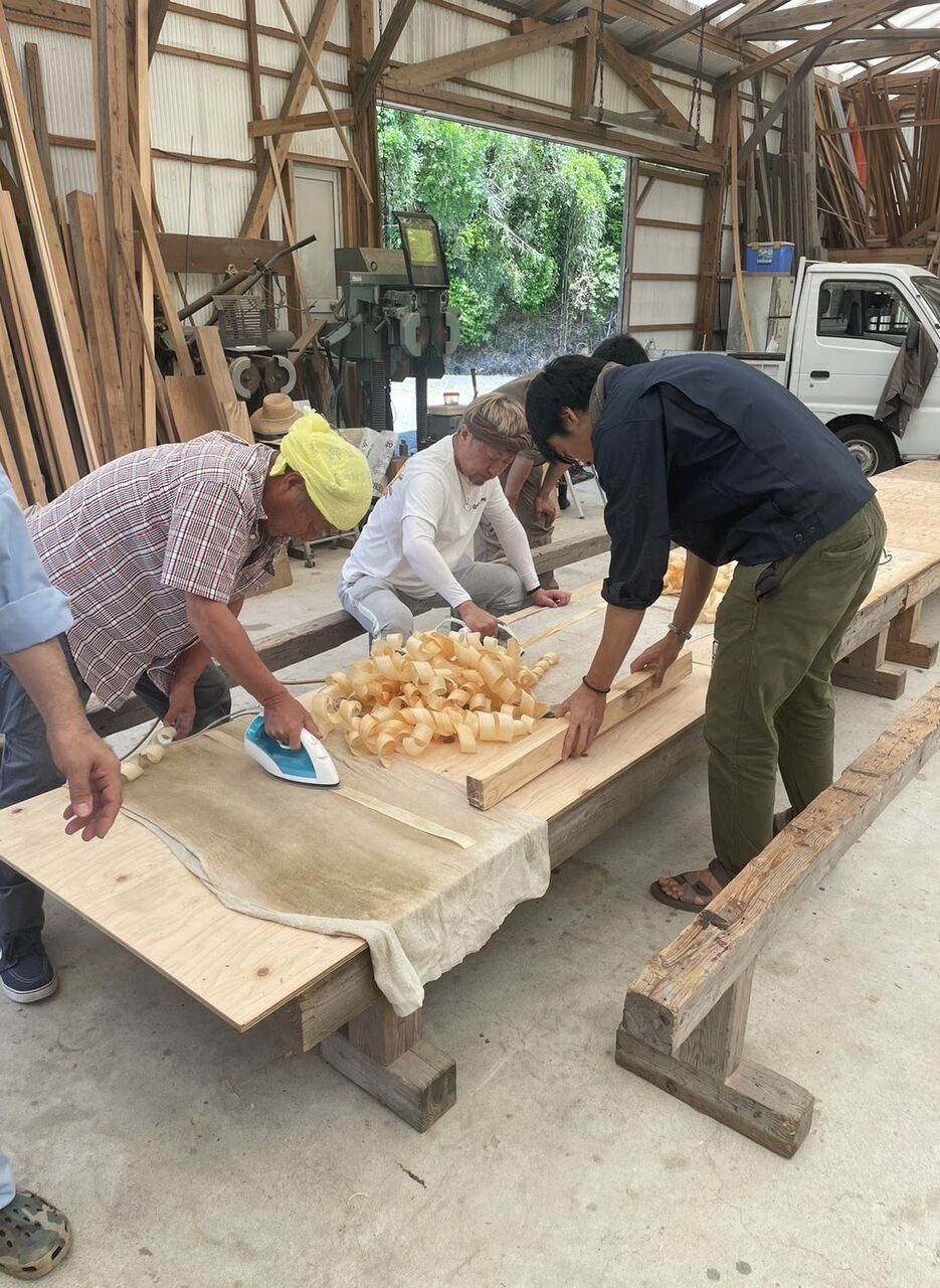 以前は、竹ベラで、今はアイロンで伸ばしていきます。 ストパーあてる感じですね。