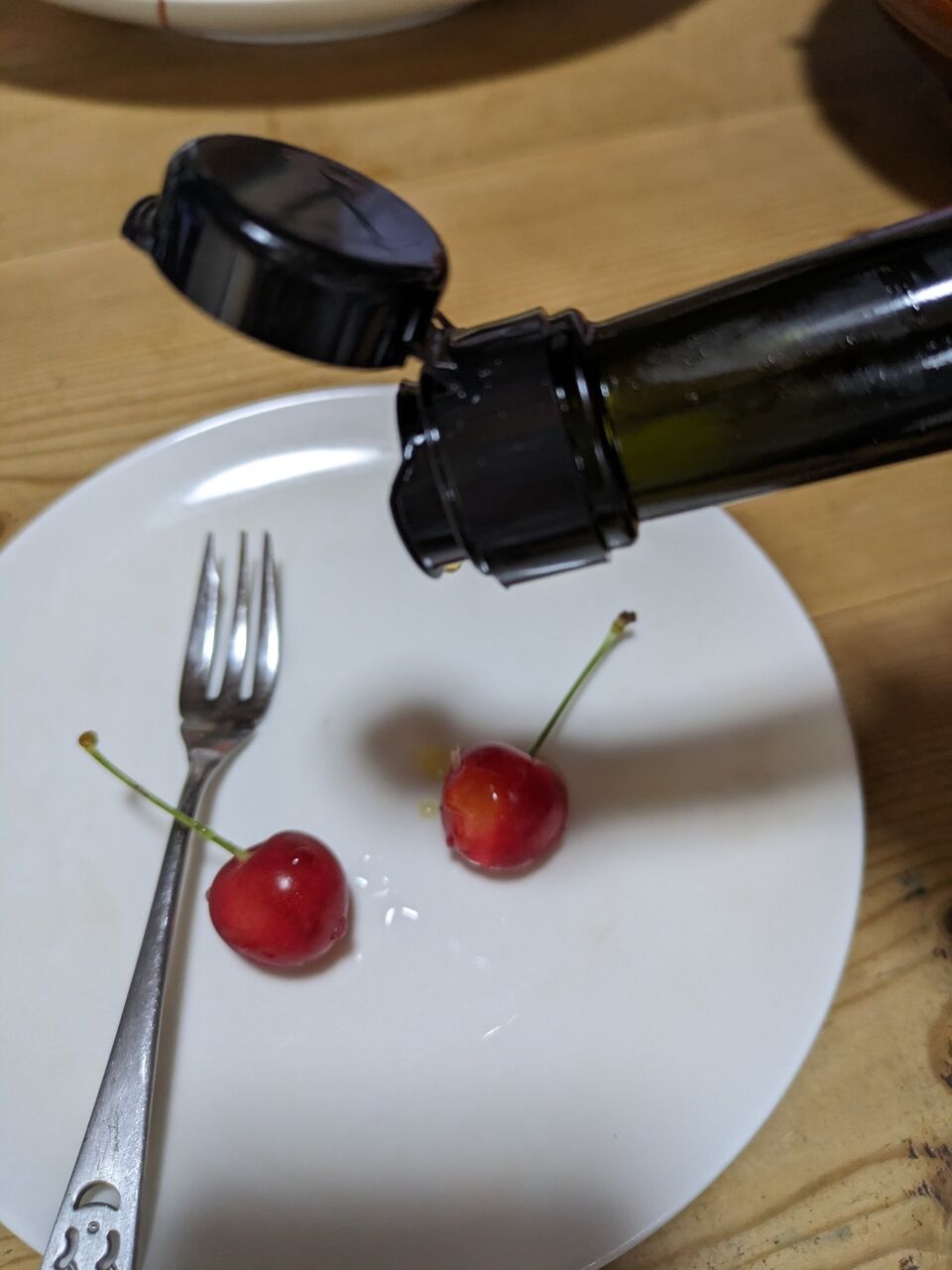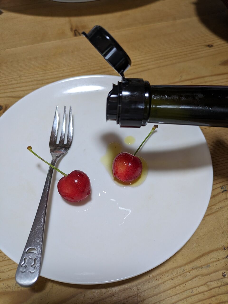 サクランボの甘酸っぱさとオリーブオイルが別々に来るので、これは有りだけど、期待していたより、合いませんでした。