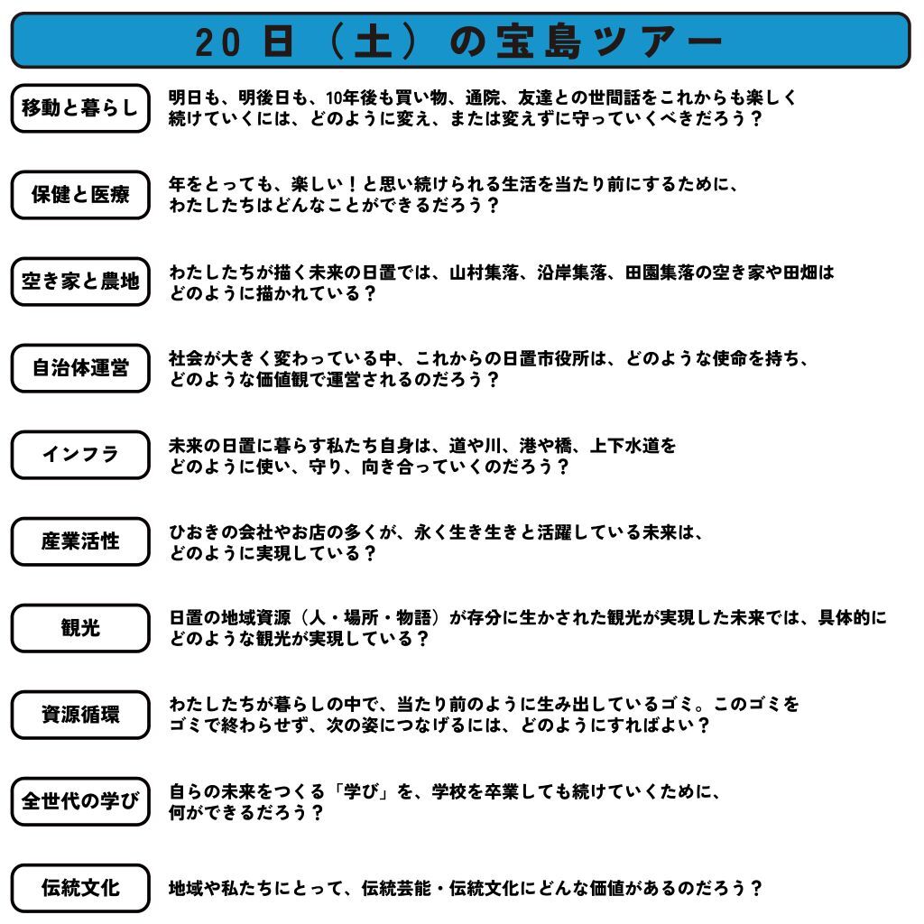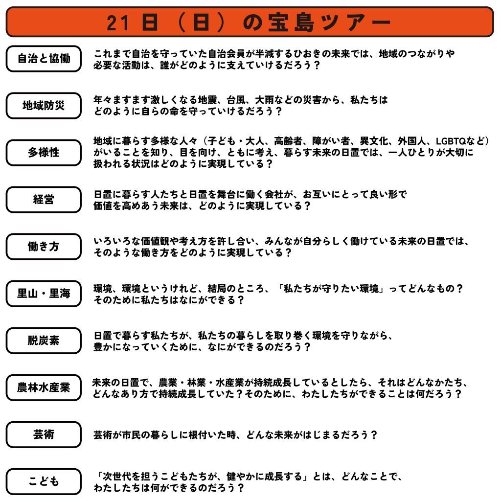 宝島ツアーでは、1ツアー1時間の中で以下の4つのことを行います。