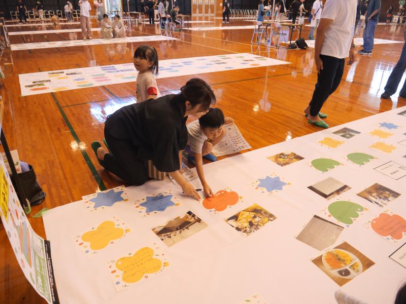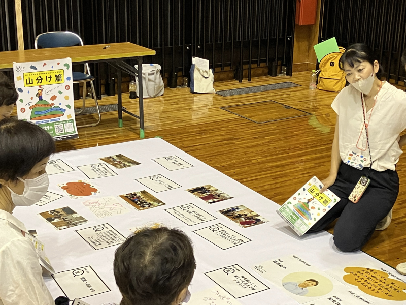 各探検隊の宝島では、参加者に宝探し篇で見つけた日置の宝を説明し、話を聞いた参加者は、こんな日置市になったらいいなと思うことを希望カードに記入して、宝島に追加していきました。