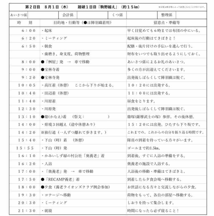 しかし、配信では踏破隊のスケジュールを詳しく紹介していなかったので、ちと詳しく紹介しますね!