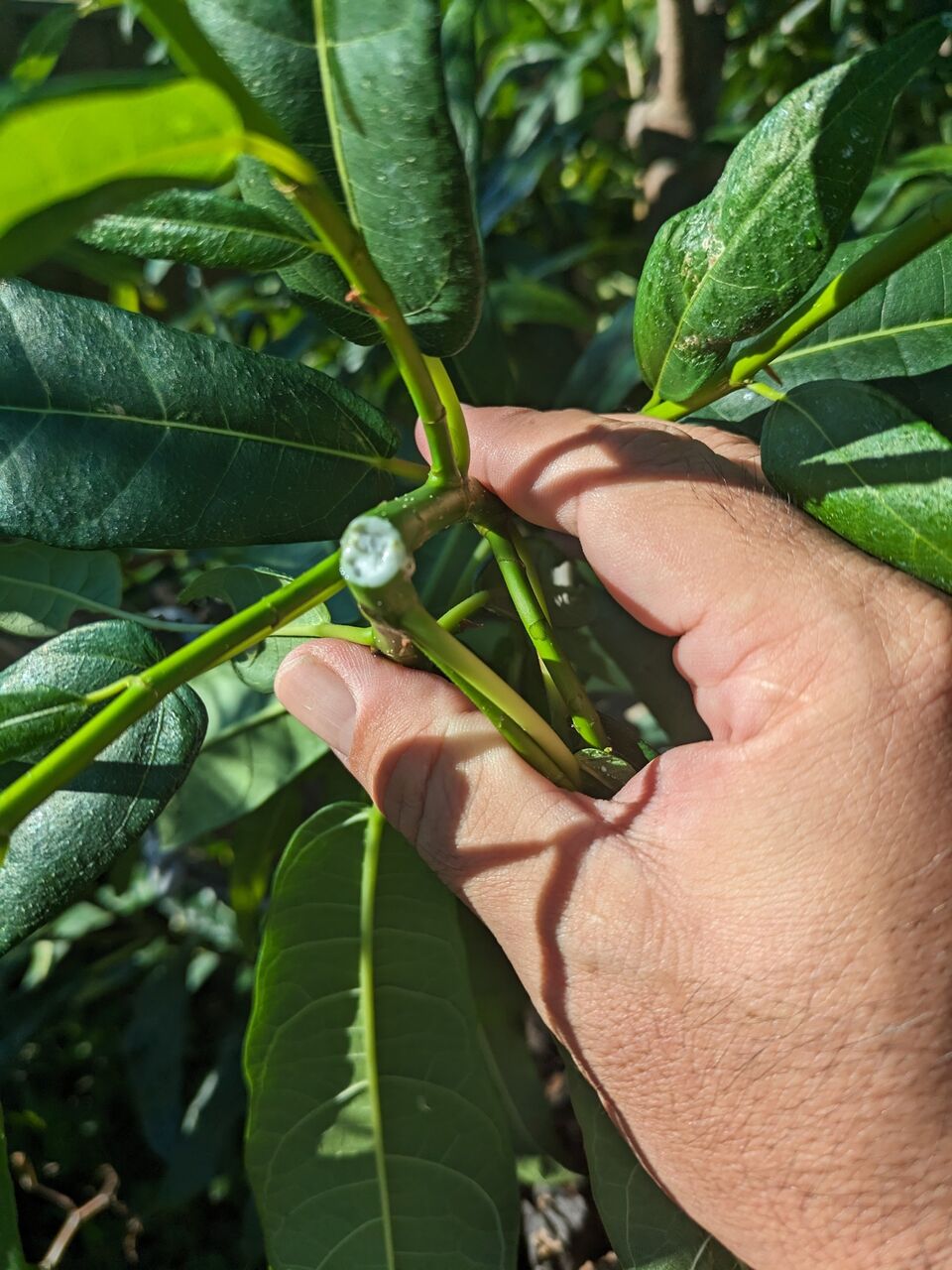 折ると、白い汁が出ます。