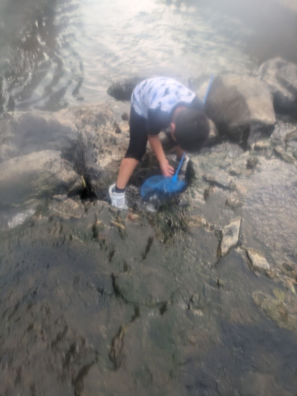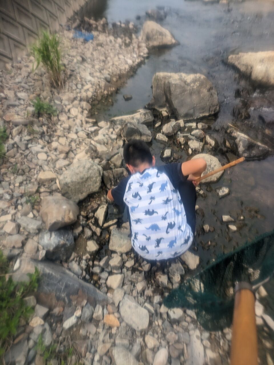 次は、ガチで、バールで石を持ち上げて、もっと大きな網で大物をねらいにいきます。