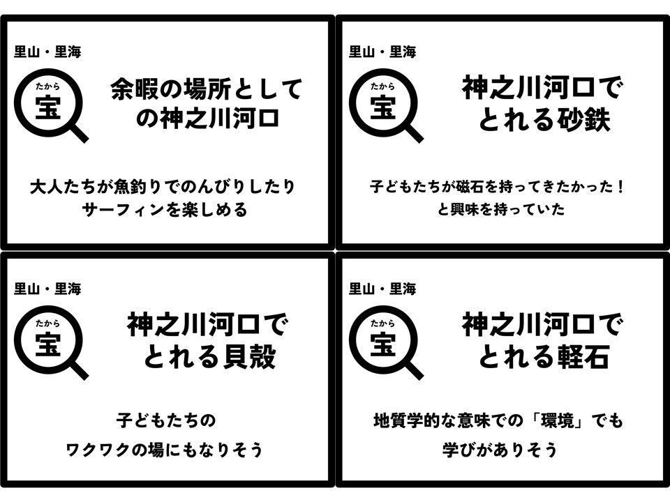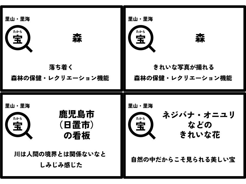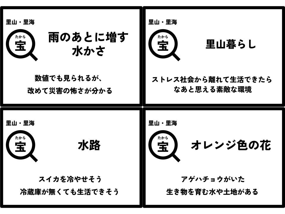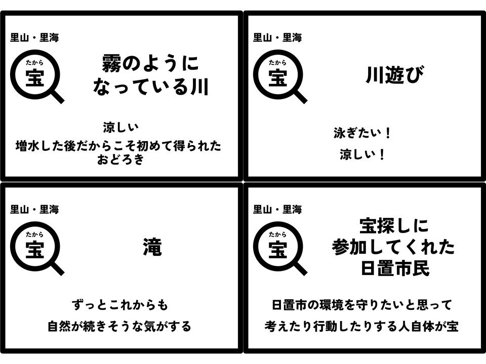 今週は、20の探検隊のうち、「里山・里海」探検隊の山分け編で紹介した「日置の宝」と来場者からいただいた「未来への希望」を紹介します。
