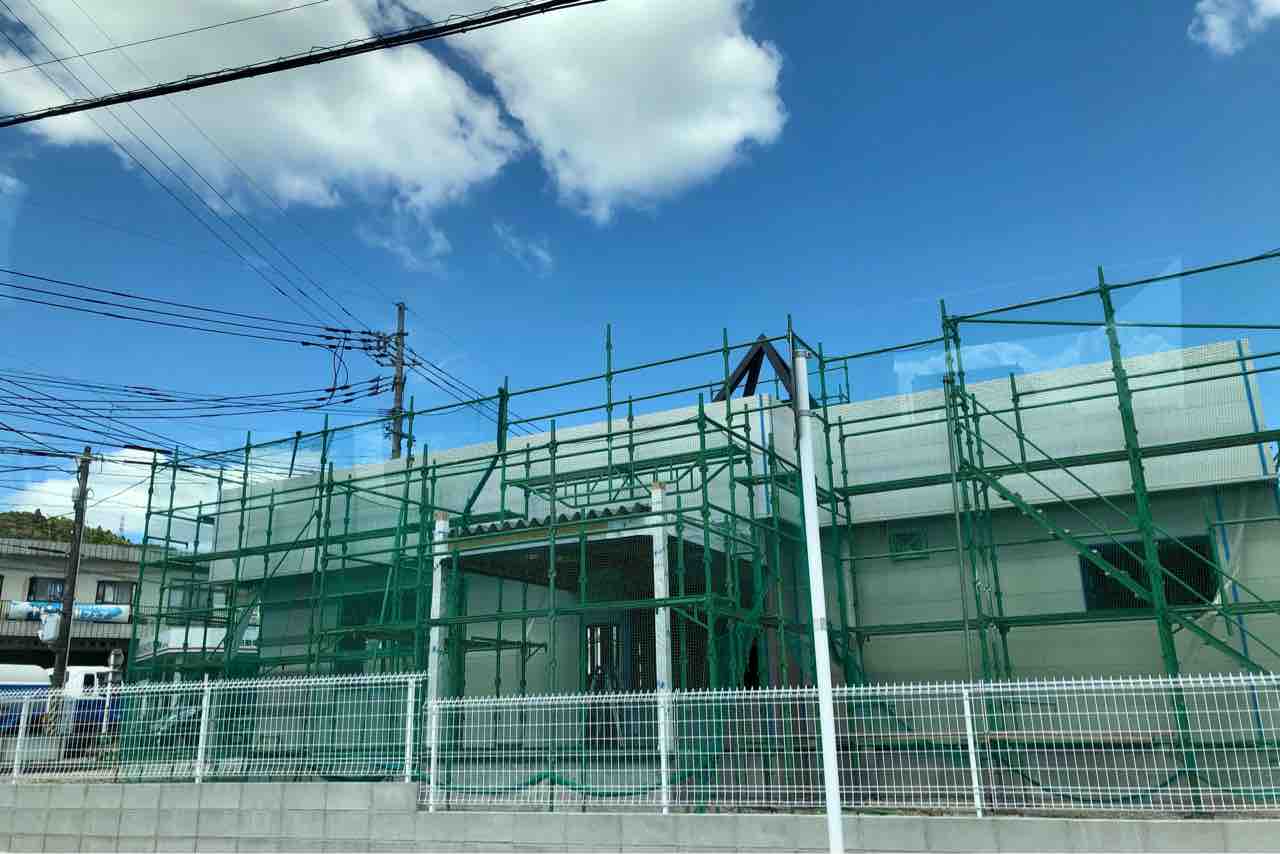 けっこう前に整地し始めて、基礎ができ、ようやく上物が建ち始めて今この状況になりました。