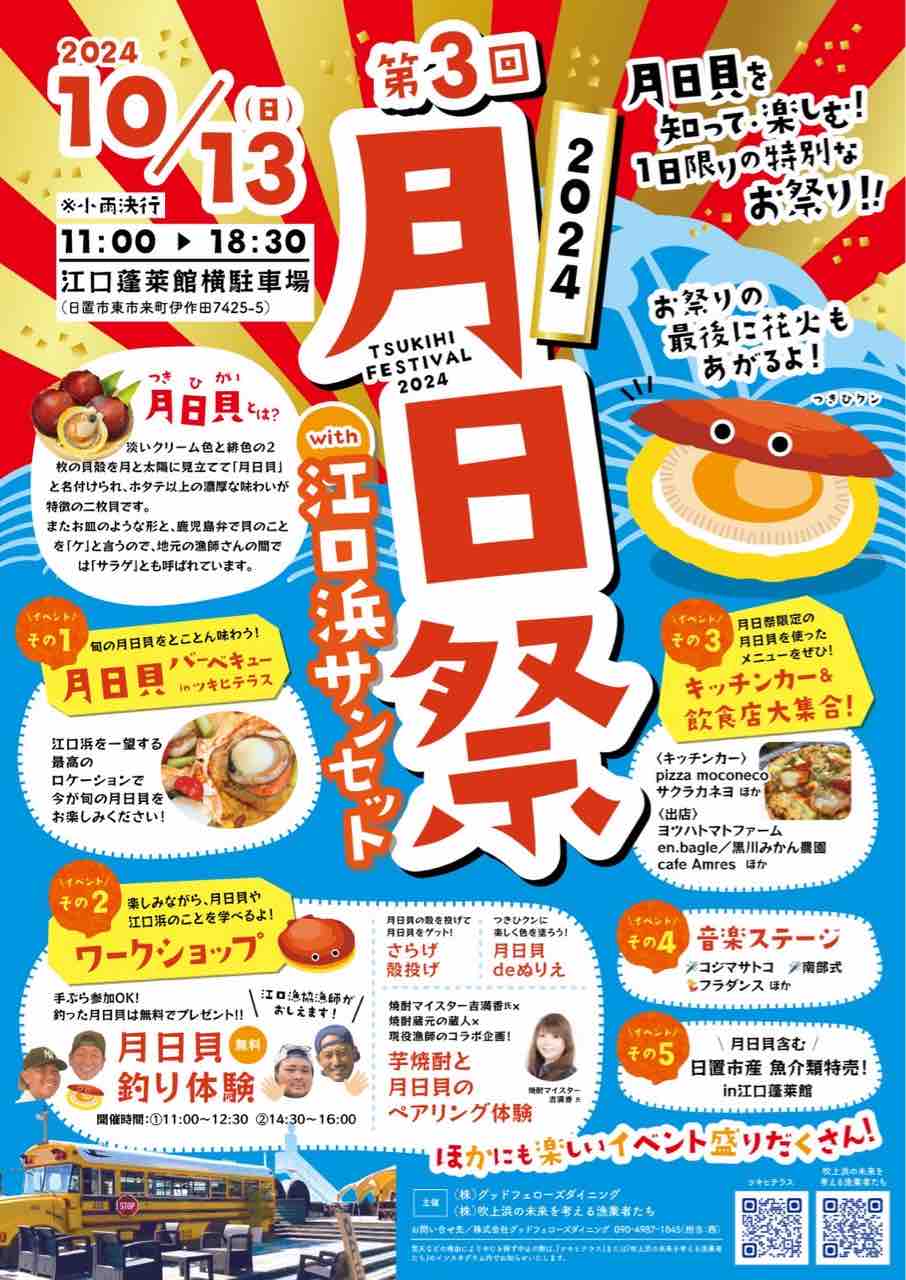 ・イベント名:第3回月日祭with江口浜サンセット・日時:10月13日(日) 11:00-18:30