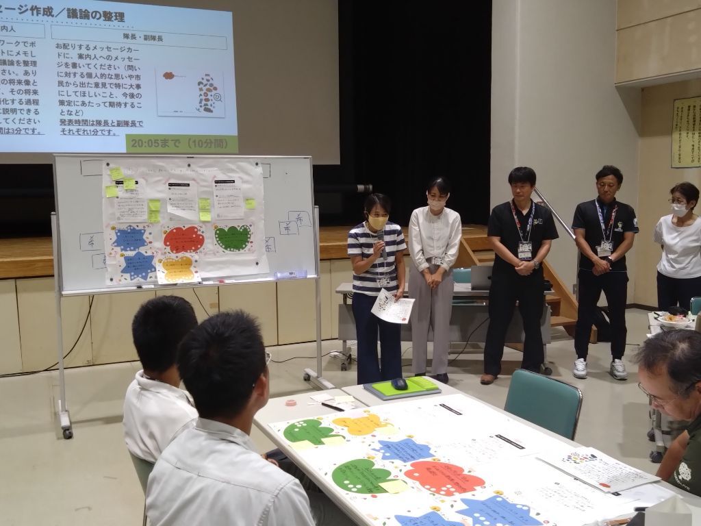 第3次総合計画策定にむけた次のステップとして、各探検隊の隊長・副隊長と共にまるひの活動に参加してきた案内人(市職員)で組織する、庁内ワーキンググループにより総合計画の素案策定に向けた作業を進めていきます。