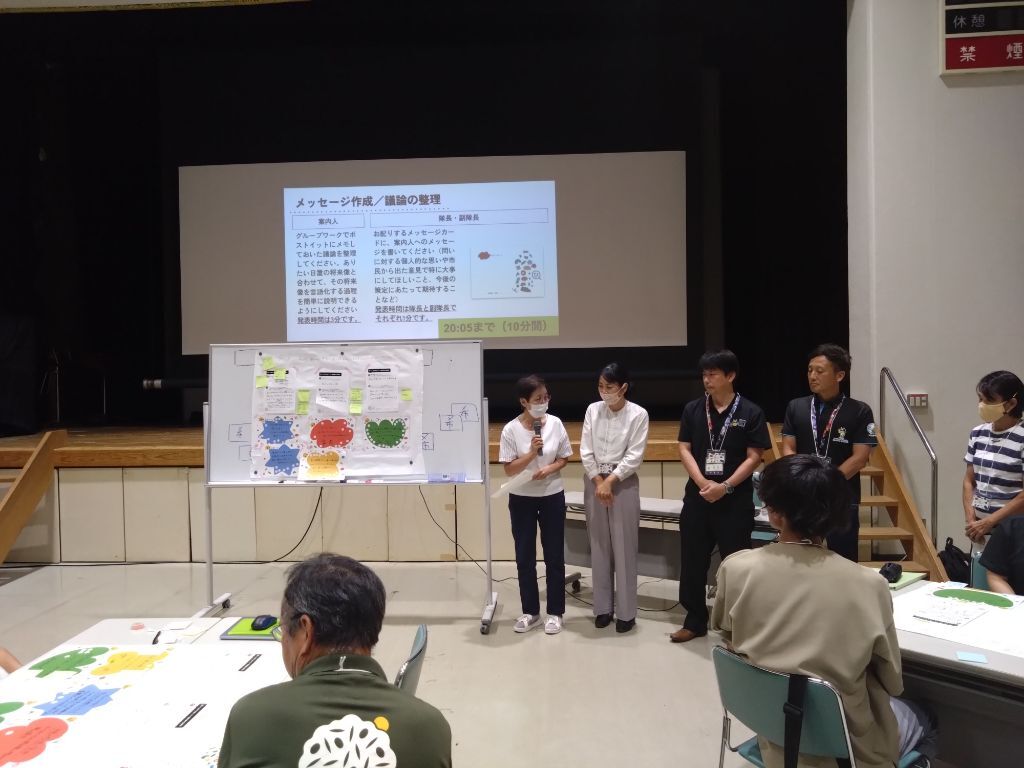 そして、7月の山分け篇で得られた希望カードを整理・選定・統合しながら、問いに対する日置市のありたい将来像を想像していきました。