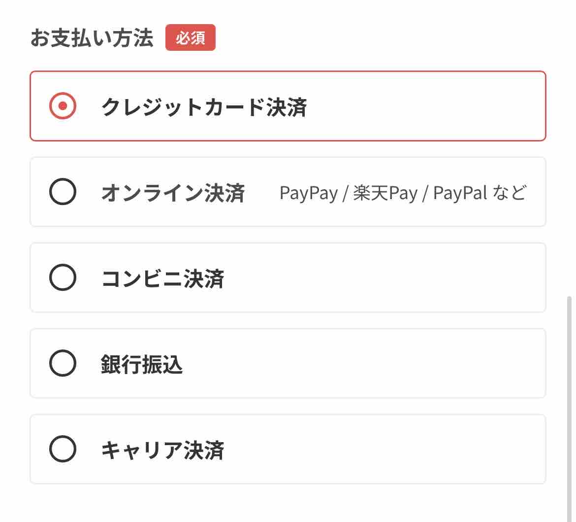決済方法もいろいろ選べる。コンビニ決済もできるから手軽だ。