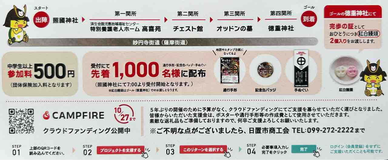 5年ぶりの開催!とのタイトルが感慨深い。私的には妙円寺詣りのこの日に約20キロの道のりを歩くというのは妙円寺詣りの源流、本旨だと感じている。その催しが再び開催されるのだ。これはぜひ応援したい!