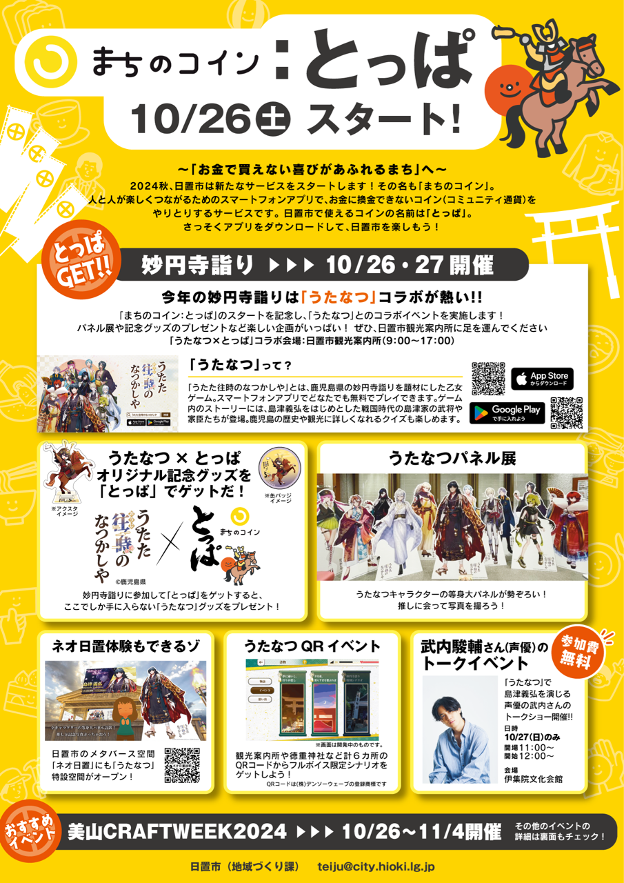 今回、「まちのコイン:とっぱ」をためてGETできる「うたなつコラボ」限定グッズを作成!