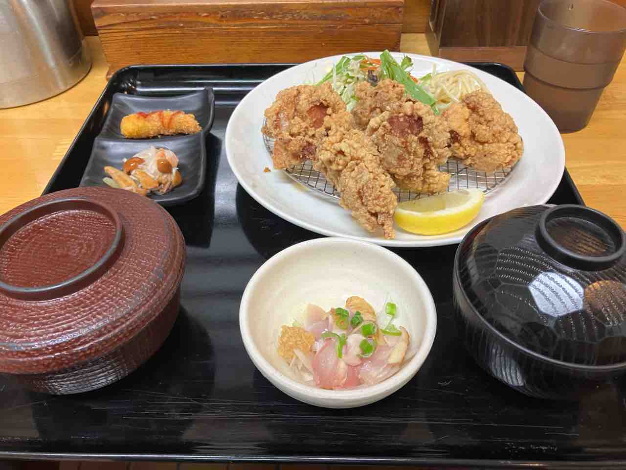 ひおきの食 伊集院のむかえ食堂!ここの唐揚げが大好きだぁぁぁ! 2024.10.29 hiokihioki どーも、全力坊主です!唐揚げ専門店が乱立する現代私はここの唐揚げがスンゴイ大好きなのであります!それがここ!「むかえ食堂」!住民に愛される「まちの食堂」こちらメニューです本日の私はブレません!口が唐揚げになってますからはい到着ぅぅぅ!!!ふぉー!旨そー!!!お昼なんですが、なんと「むかえ食堂」さん定食の小鉢が「鳥刺し」なんです!これ、めちゃくちゃ嬉しいですね迷わず鳥刺しからいただきます!皮もコリコリで旨い!他にも酢の物やちょっとしたフライも小鉢についに来ましたぁぁぁ!大本命唐揚げーあー、めちゃくちゃ旨そう!いや絶対旨い!ふー!やはり最高!アツアツで最高!後半にレモンはかけます私、サラダの横のパスタこれ大好きであります!ふー。これでまた闘える!徹底的に闘える!そんな気持ちにさせる魂の唐揚げでございます!オススメですよー!▪️むかえ食堂住所 鹿児島県日置市伊集院町下谷口1986-6電話 099-272-2630