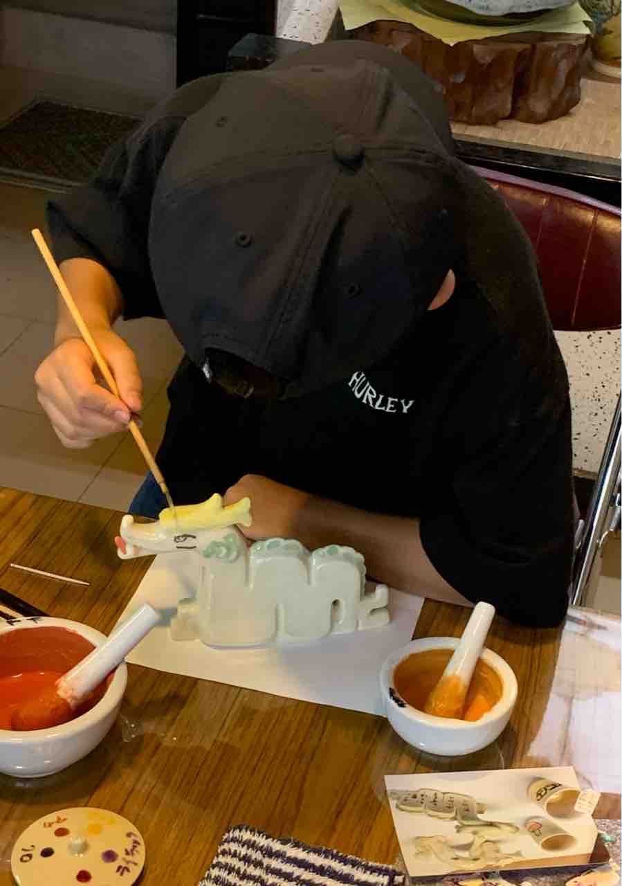 絵付けをするお皿、花瓶、置物、自分の好みのものを選んで、鉛筆✏️で下絵をして色を入れていきました。