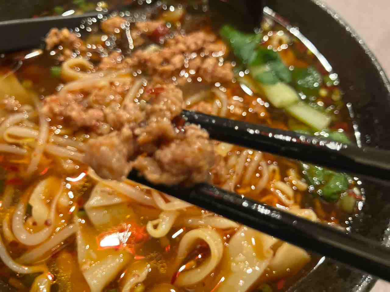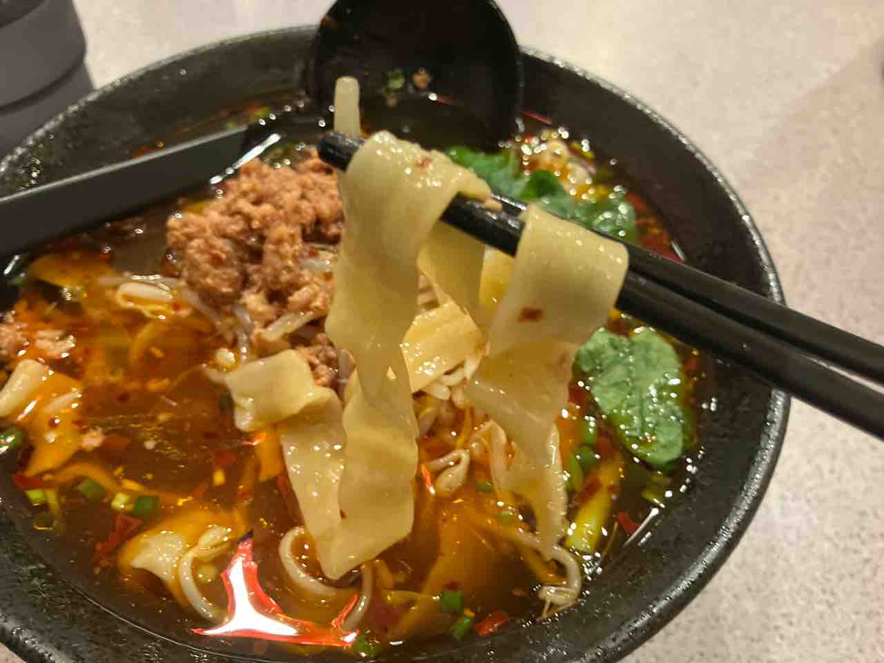 ひおきの食 刀削麺にどハマりしましたー!金閣の麻辣刀削麺はむちゃくちゃ旨いっス! 2024.12.1 全力坊主 どーも、全力坊主です!今夜はステキな出会いがありました!刀削麺との出会いであります!夜、中華食べたいと考えやって来ました東市来駅近くにある「金閣」本格というか、中国の方が作る本気の中華が堪能できるお店です赤い提灯やら、なんか中華ってかんじですねーおー!めちゃくちゃ中華って感じっスこういうところ、ホッコリします手書きのメッセージ凄くイイ今日は刀削麺に挑戦することに!初体験であります!辛いの大好きなので、麻辣刀削麺に決定!中国の方であろう店員さんにカライノ ダイジョウブデスカ?と確認されましたそれほど辛いのか???来ました!おー、辛そうな良い匂いがまずはスープを一口なんかトムヤンクンみたいな辛さ唐辛子の辛さが前面に出てます!美味い!そして麺!この刀削麺マジでうまいっス!腰があり食べ応え抜群!なんか一本ずつ堪能したくなる歯応えこれは癖になりますなーこのスープ、もやしがあう!ひき肉もたんまり入ってます!美味い!国道3号線沿い東市来駅近くにきたなら、ぜひ刀削麺ご堪能くださいませー♪