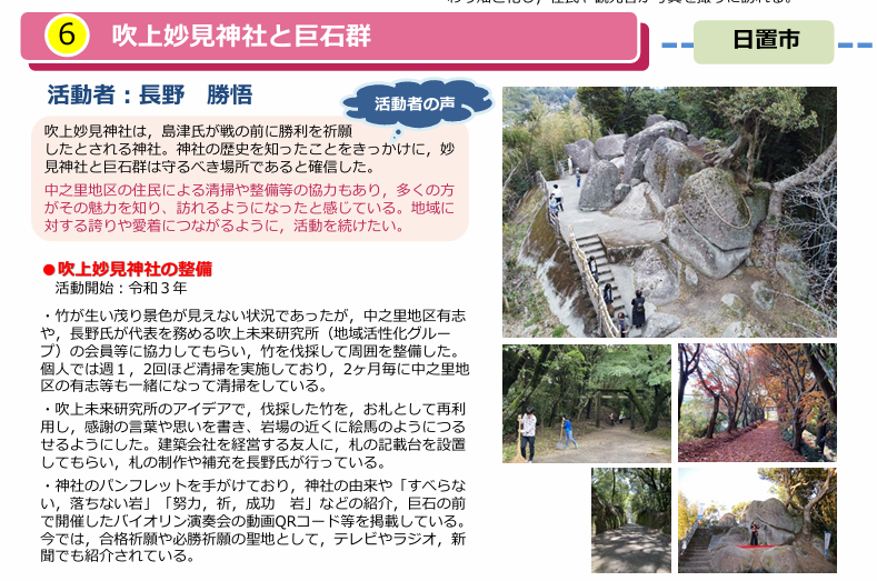 この「みんなで選ぶ」最終選考に8ヶ所の取り組みが選び抜かれており、なんと日置市からもエントリーされているのです!