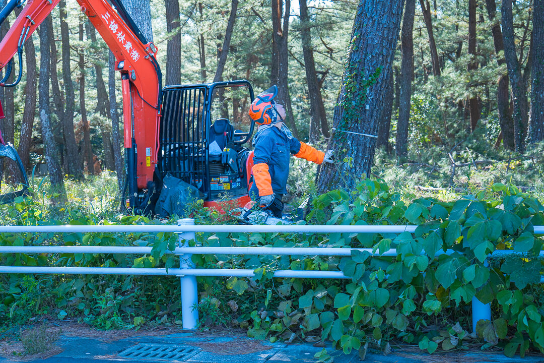 チェーンソーでの切り込みを駆使して倒れる方向までコントロールしていく技術に驚きました。