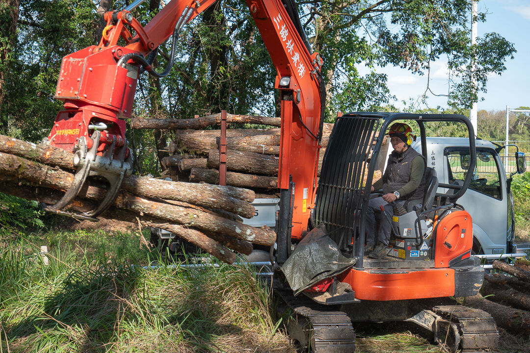 ただ木を運ぶだけでなく、職人が重機を自分の手足のように正確に動かし、