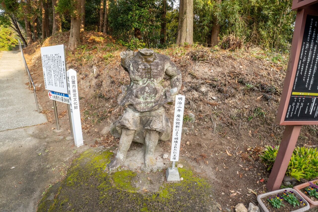 園林寺跡に踏み入れて最初に目にしたものは、廃仏毀釈の影響で無惨にも頭と腕が無くなってしまった仁王像でした。