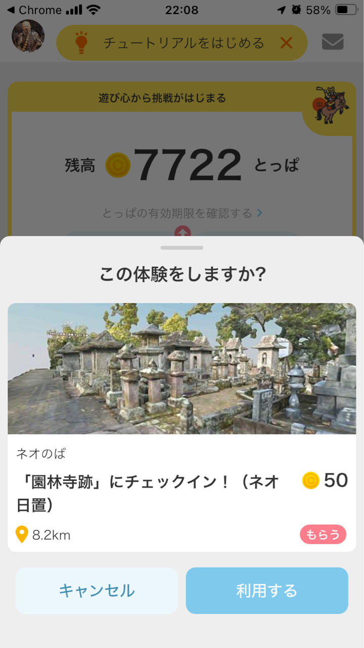 この「空間に行く」をタップすると、ネオ日置の園林寺跡へ行けるのです!