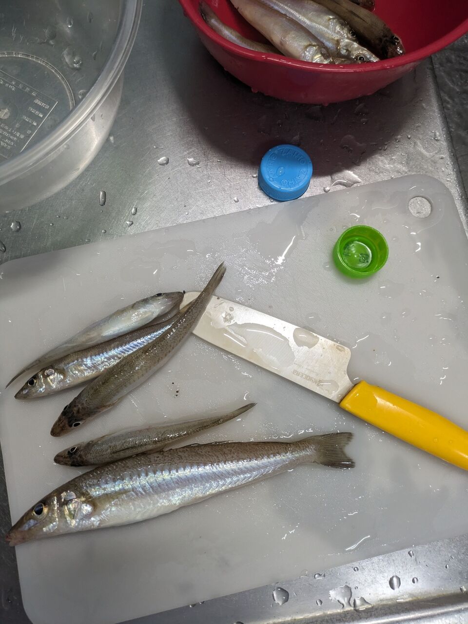 鱗は、ペットボトルのキャップで取ります。