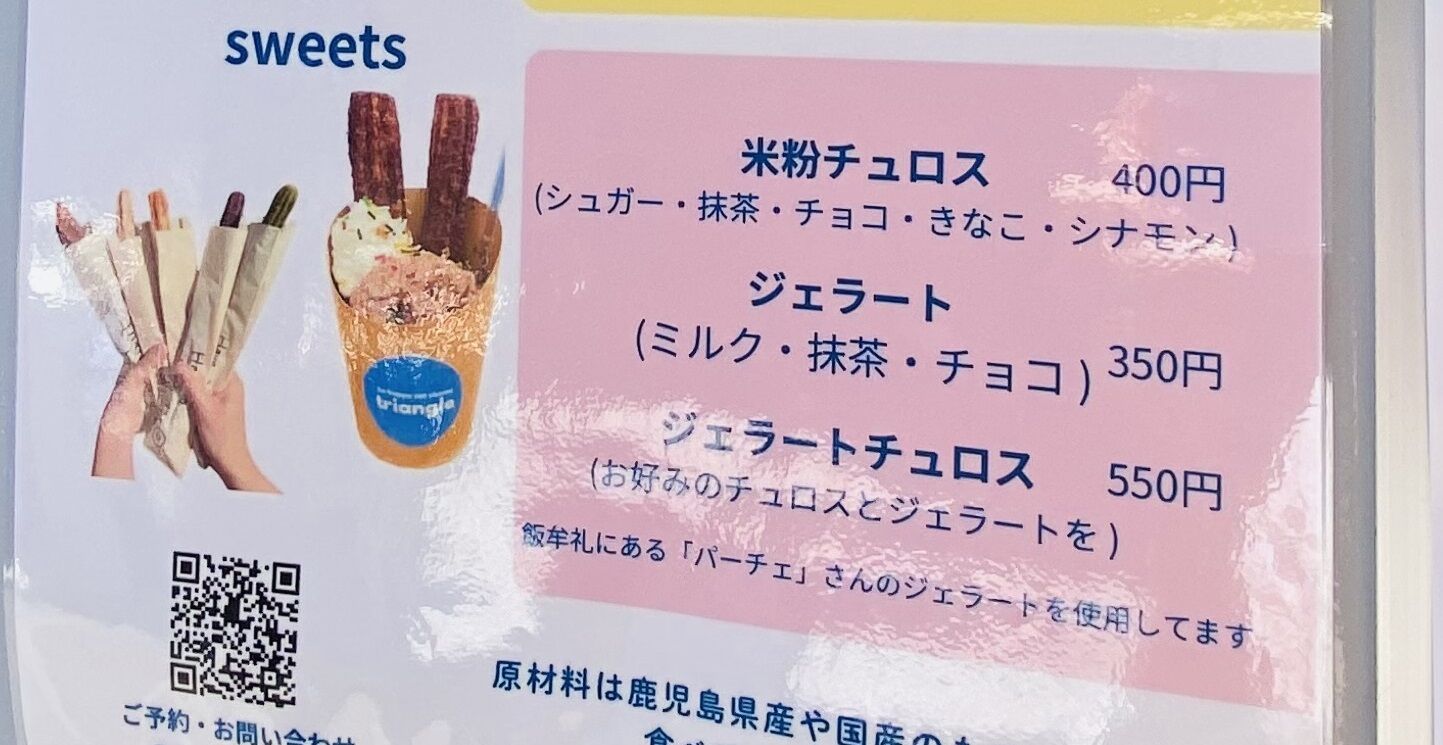 スイーツは「米粉チュロス」「ジェラート」「ジェラートチュロス」があり、