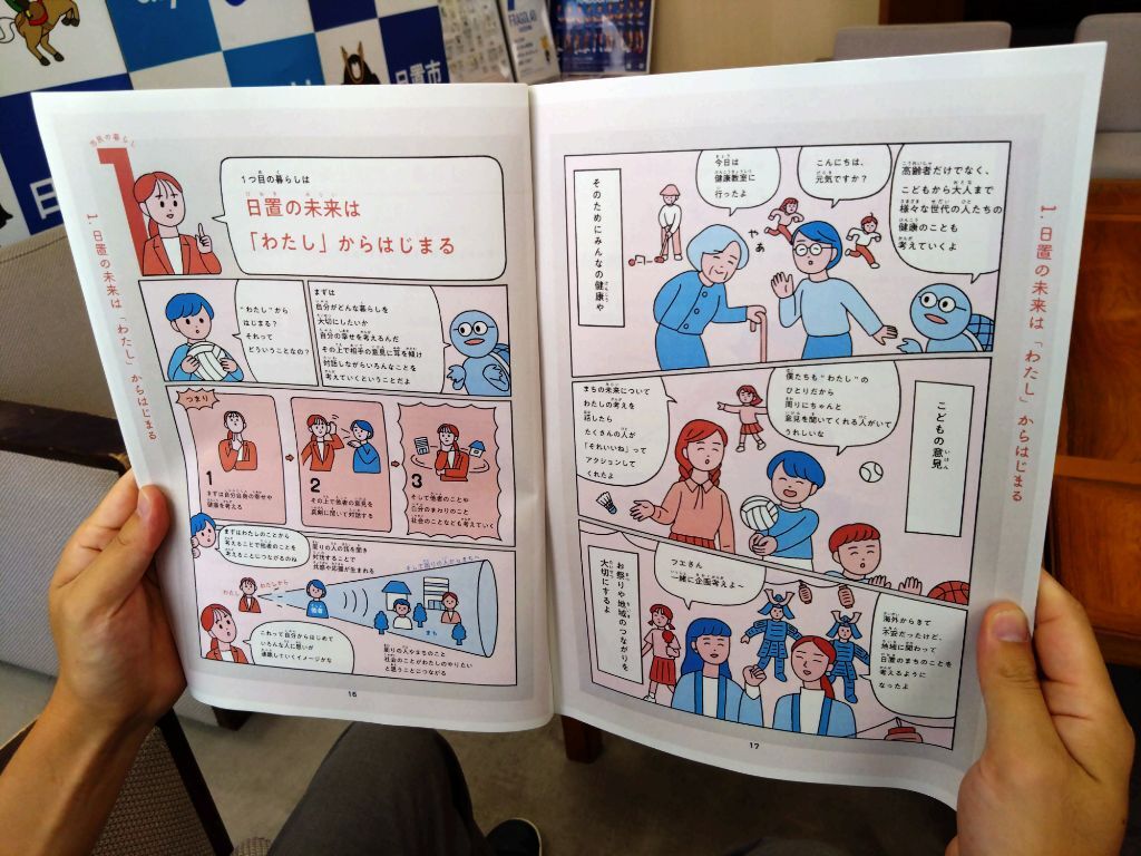 今回の第3次日置市総合計画はこれまでの総合計画よりも多くの皆さまに読みやすいよう、イラストだけではなくマンガも取り入れながら作成しています。