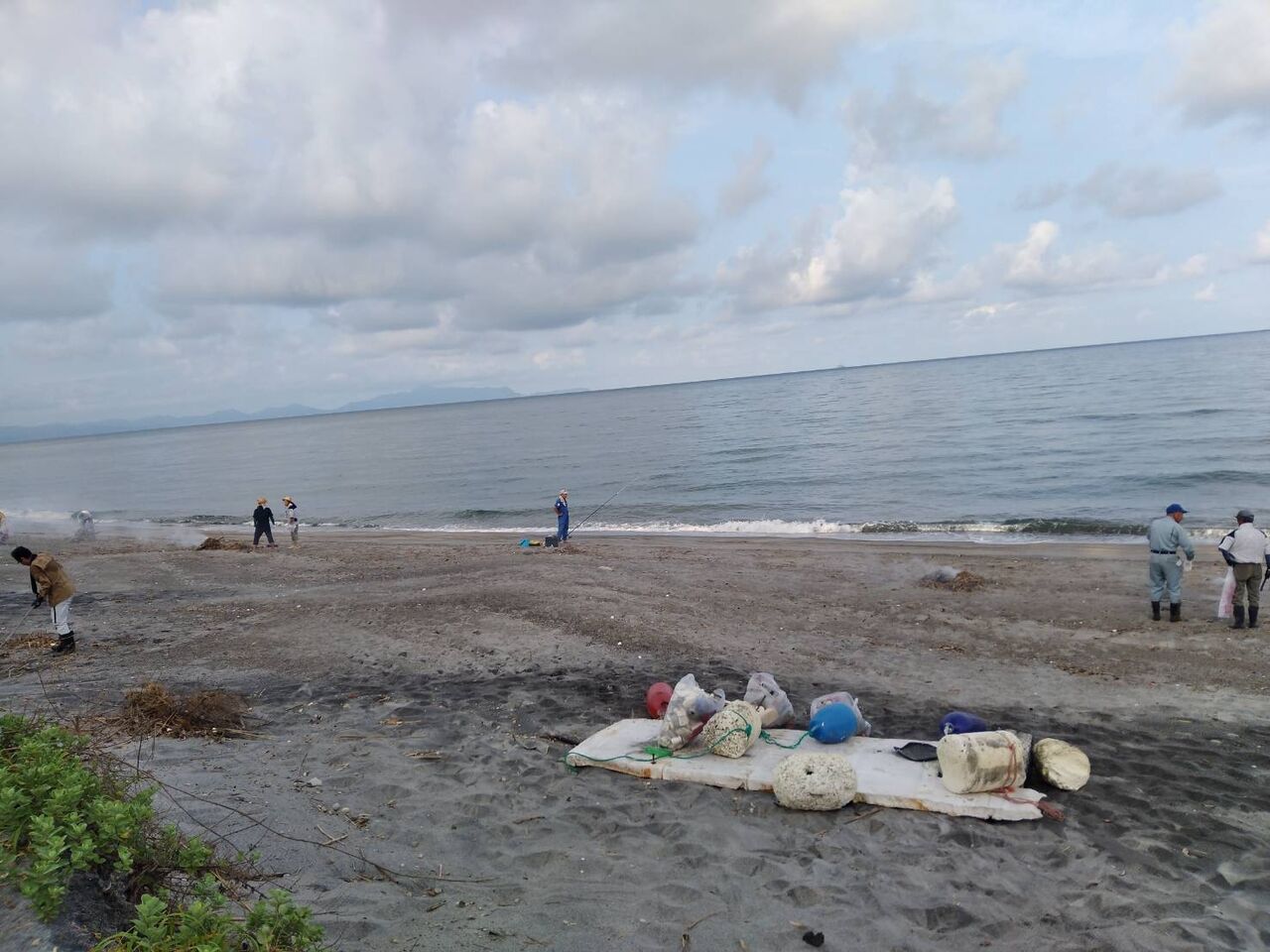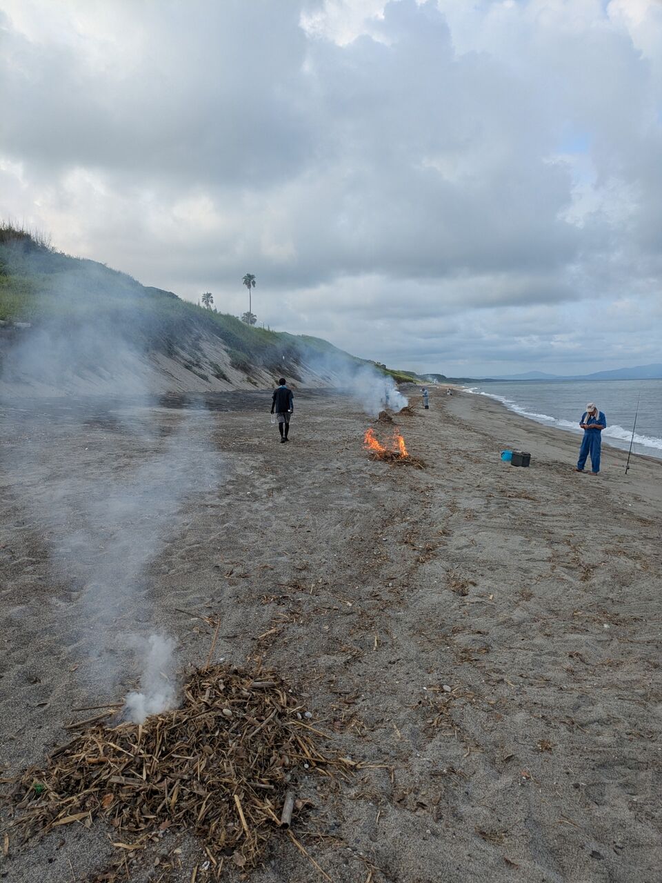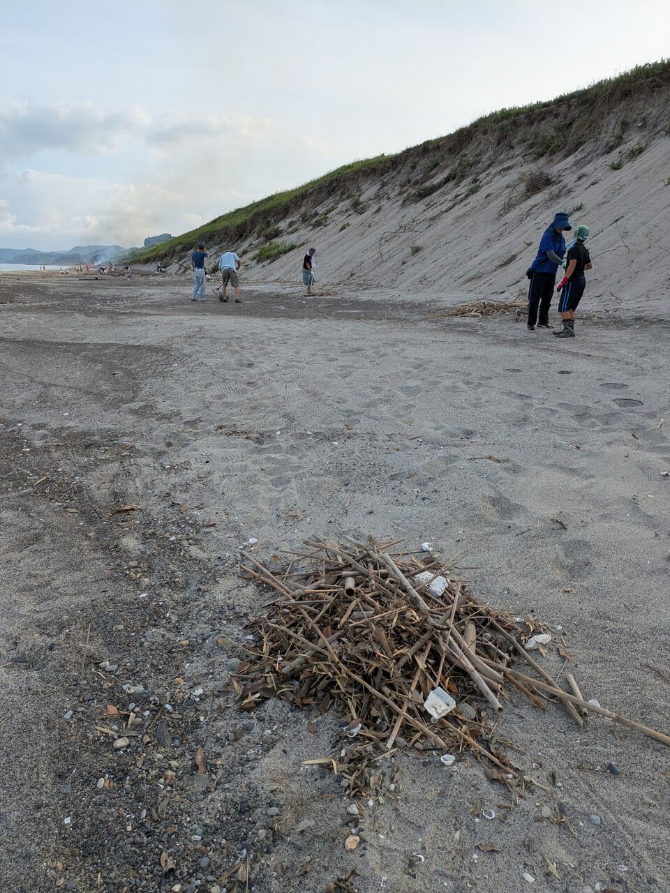 海岸清掃です。 竹や流木は集めてます。