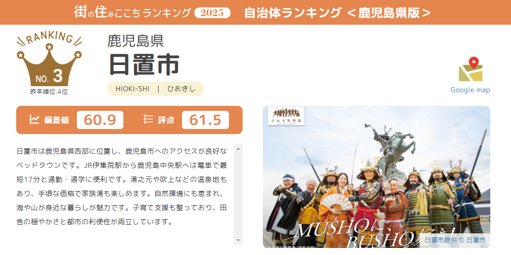 このランキングで、日置市は3位になりました!