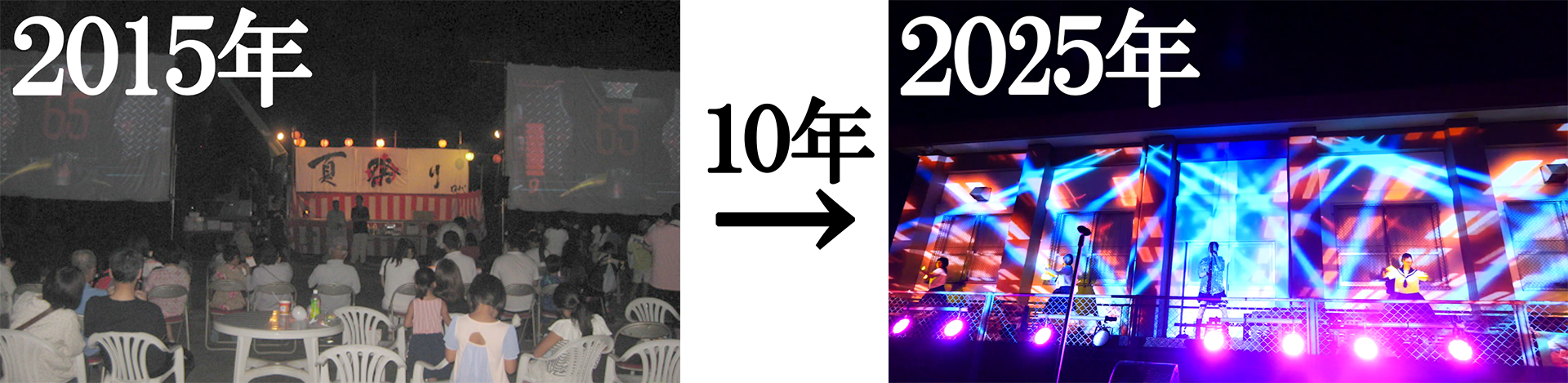 集落のチープな夏祭りが終焉を迎えそうなぐらい弱っていたので10年前に乗っ取って集落内ではなく外部向けに大改革を行い、今やプロジェクションマッピングとステージを融合させたシン・夏祭り「YABOLIVE」となったのです。