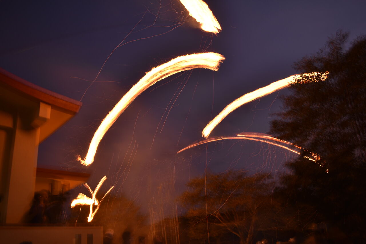あの長さの竹に火をつけて降るわけだから、それは火の粉が降り注ぐ。竹を降る地元の方も当然だが、見る方も撮る方にも容赦なく火の粉が降り注ぐのだ!