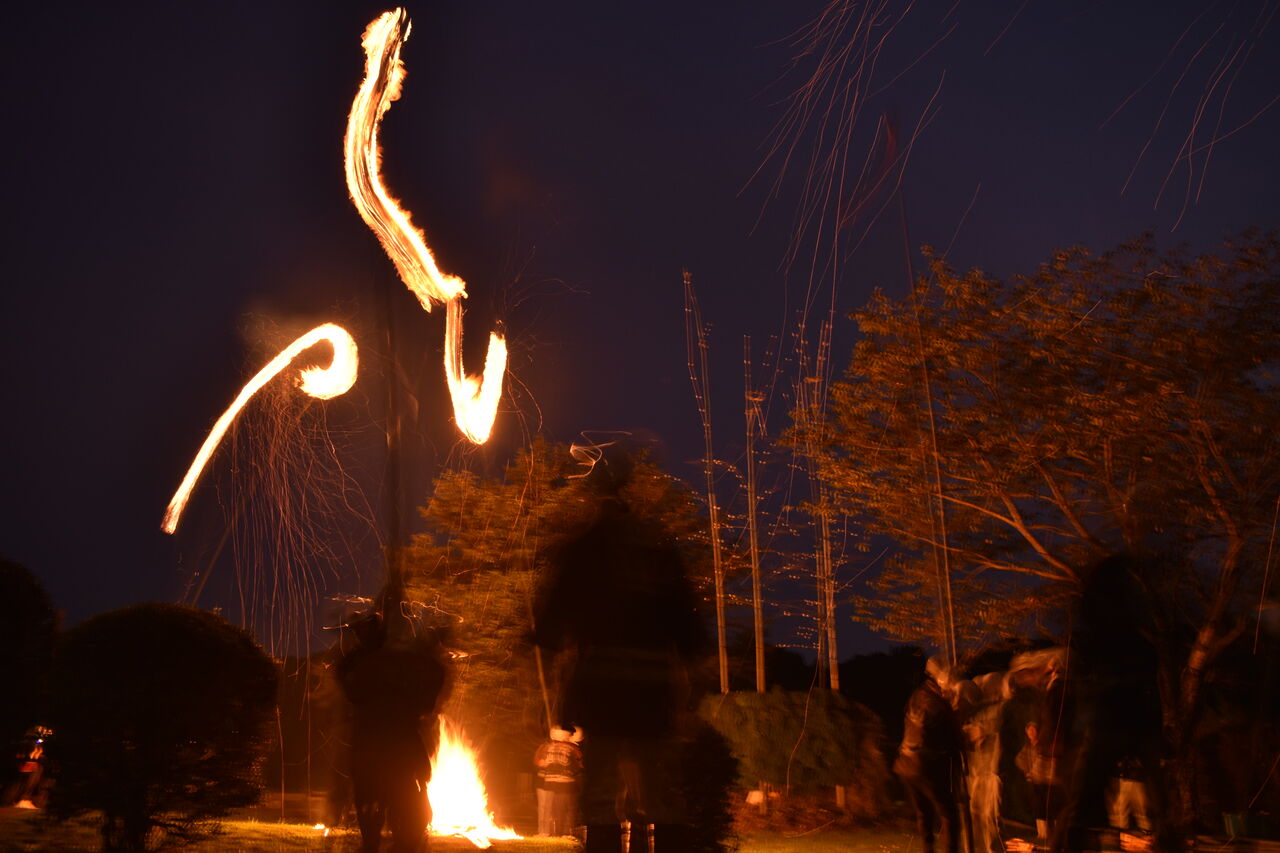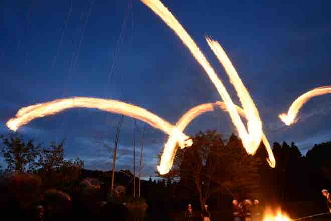 弧を描くだけでなく、竹の動きによっては炎をまとった龍のような姿も見せてくれる。