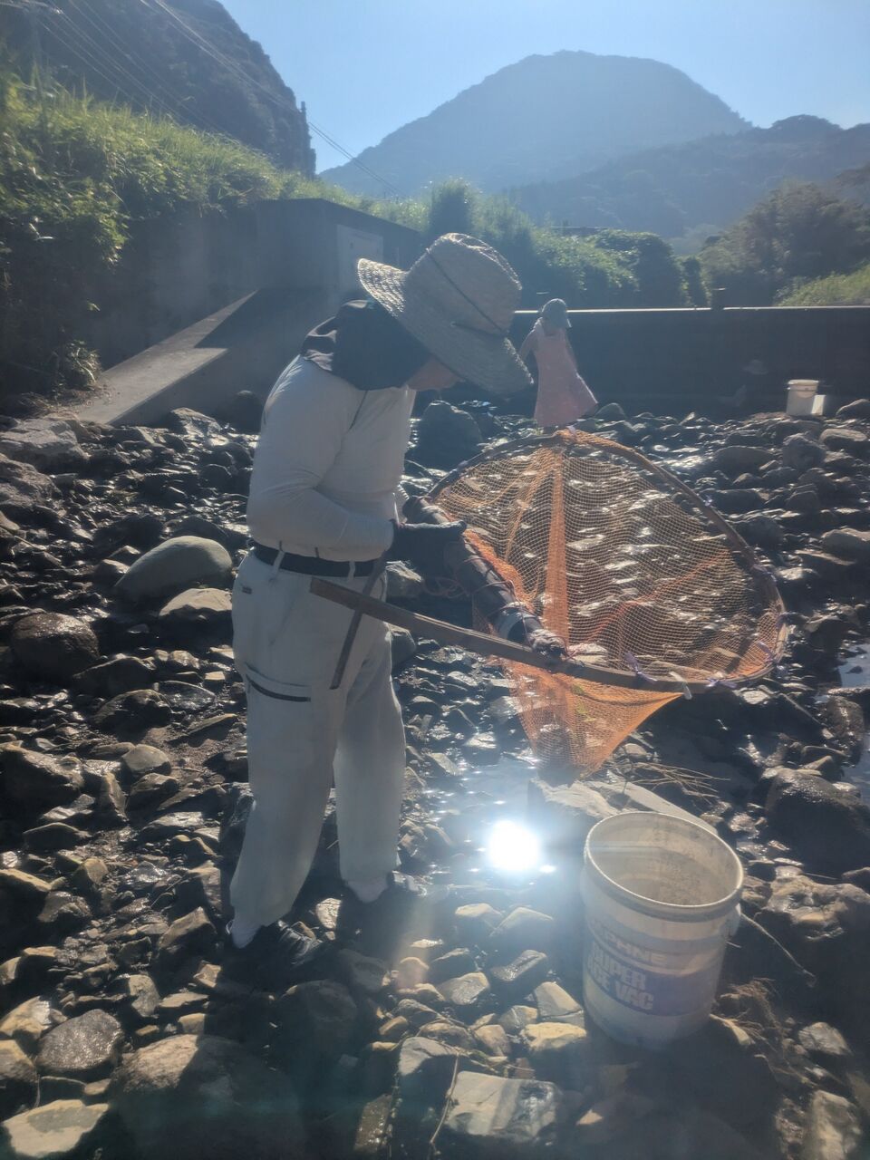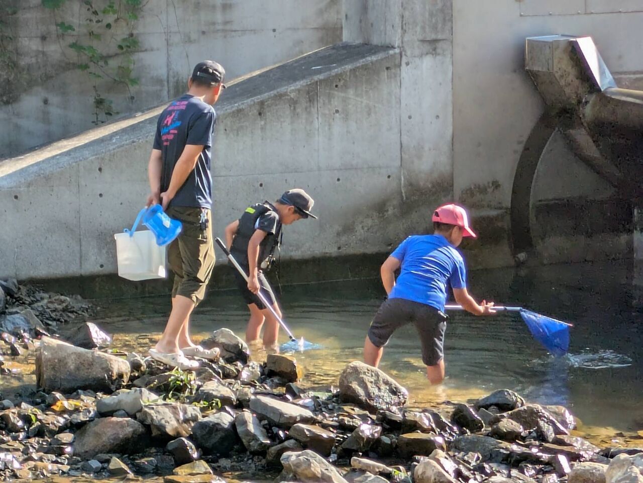 確定!ゲートの下の、川エビ&小魚。