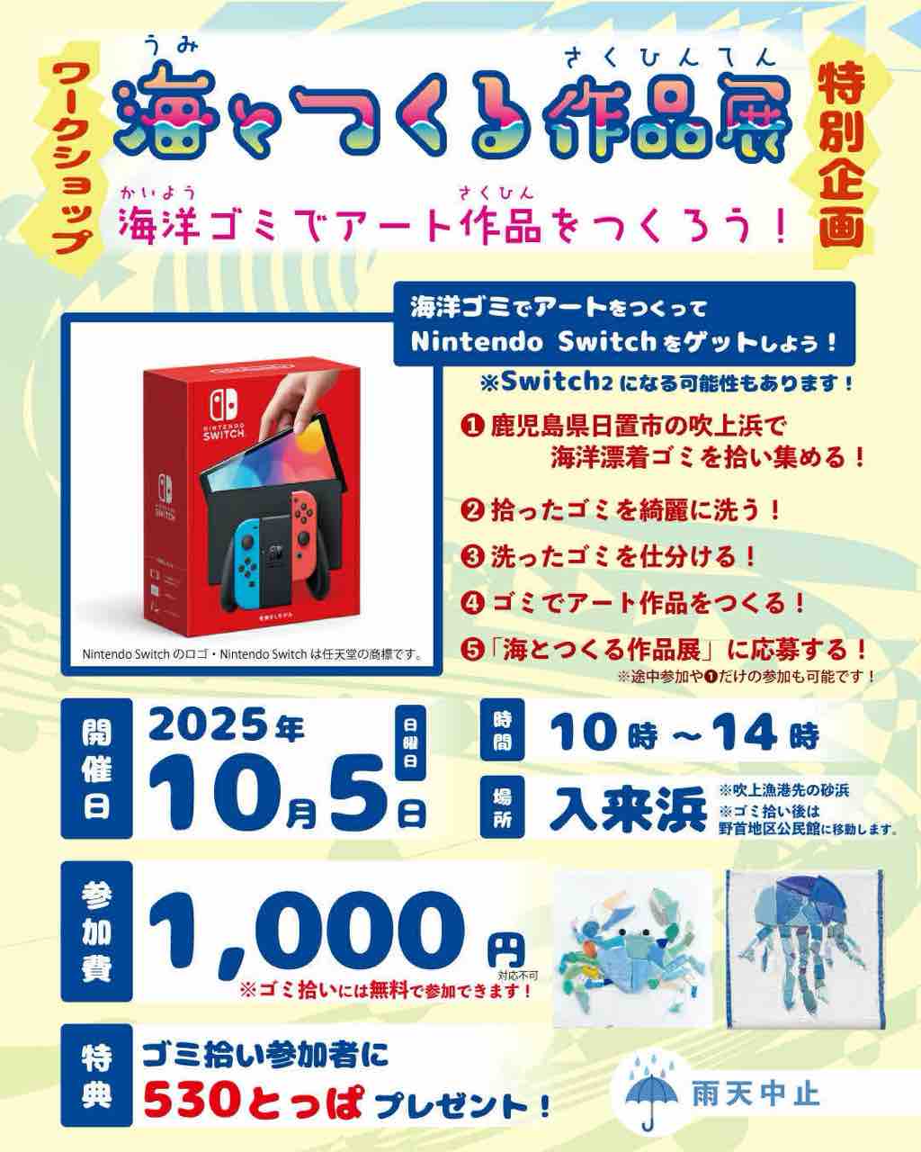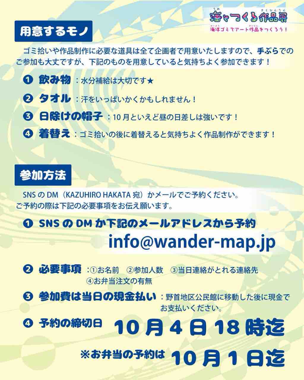 吹上浜でゴミ拾いを行い、拾ったゴミでアート作品を制作、そのまま10月26日開催の「海とつくる作品展」へエントリーまで行う特別ワークショップを開催します!