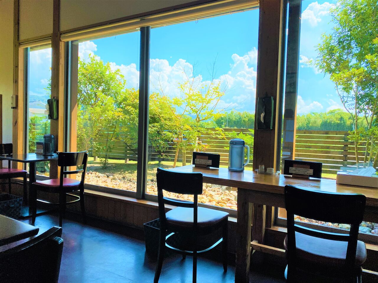 逆光で店内が暗いのですが、窓から見える景色も素敵です!