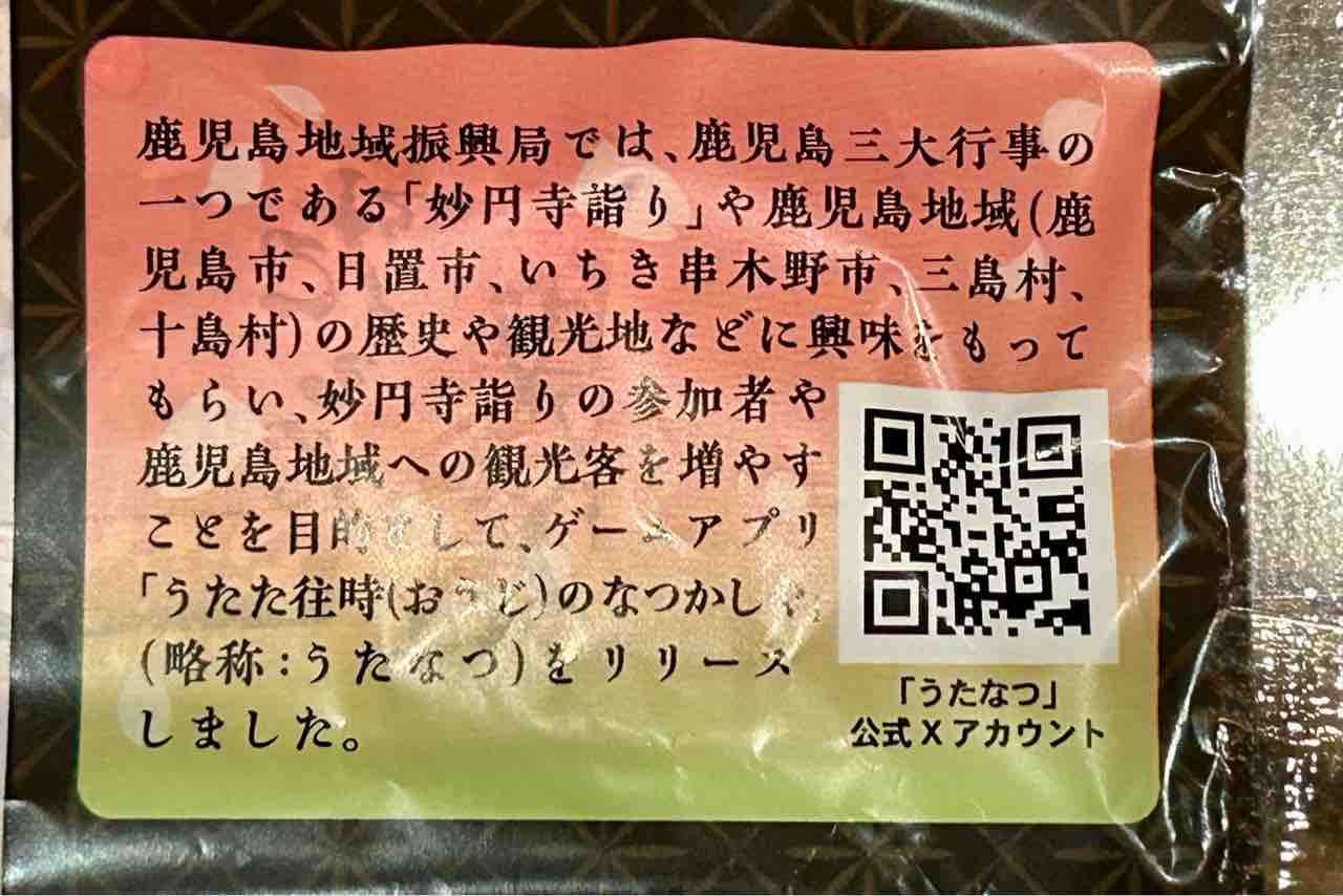 包装の裏面にはしっかりとうたなつリリースの経緯が書かれてある。鹿児島地域振興局のうたなつにかける想いが伝わってくる。