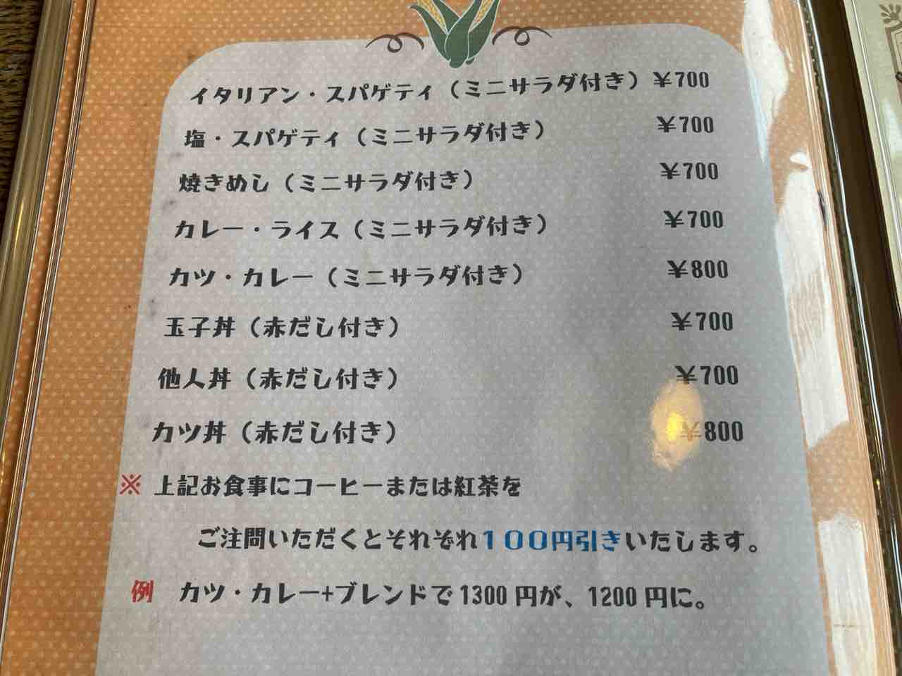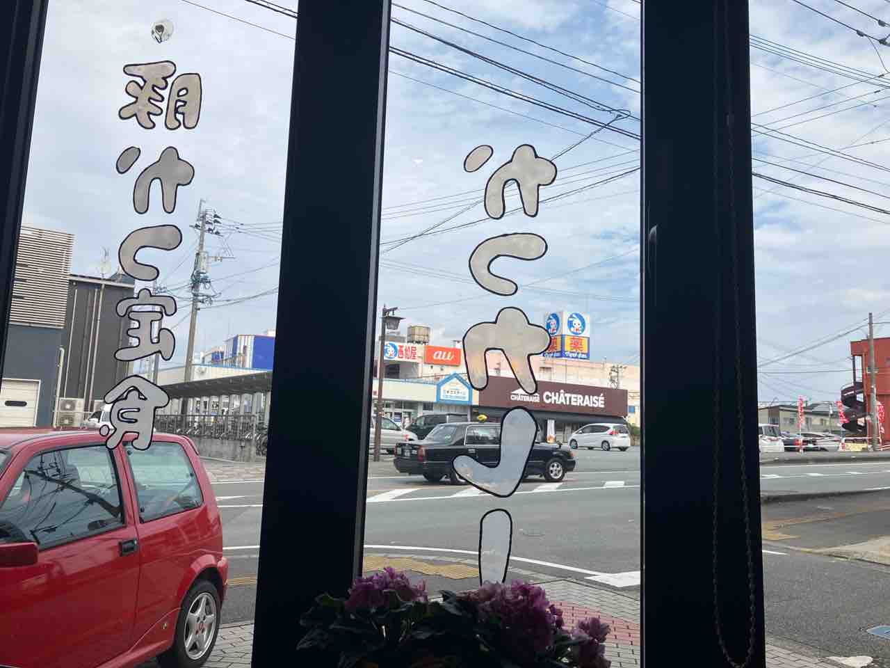 窓ガラスにメニューが書いてあります